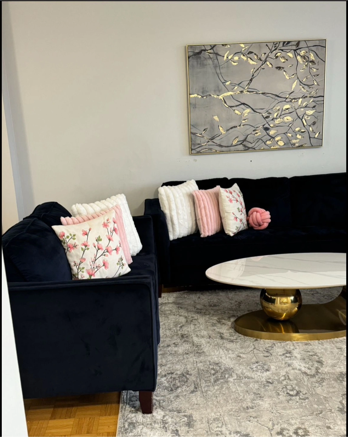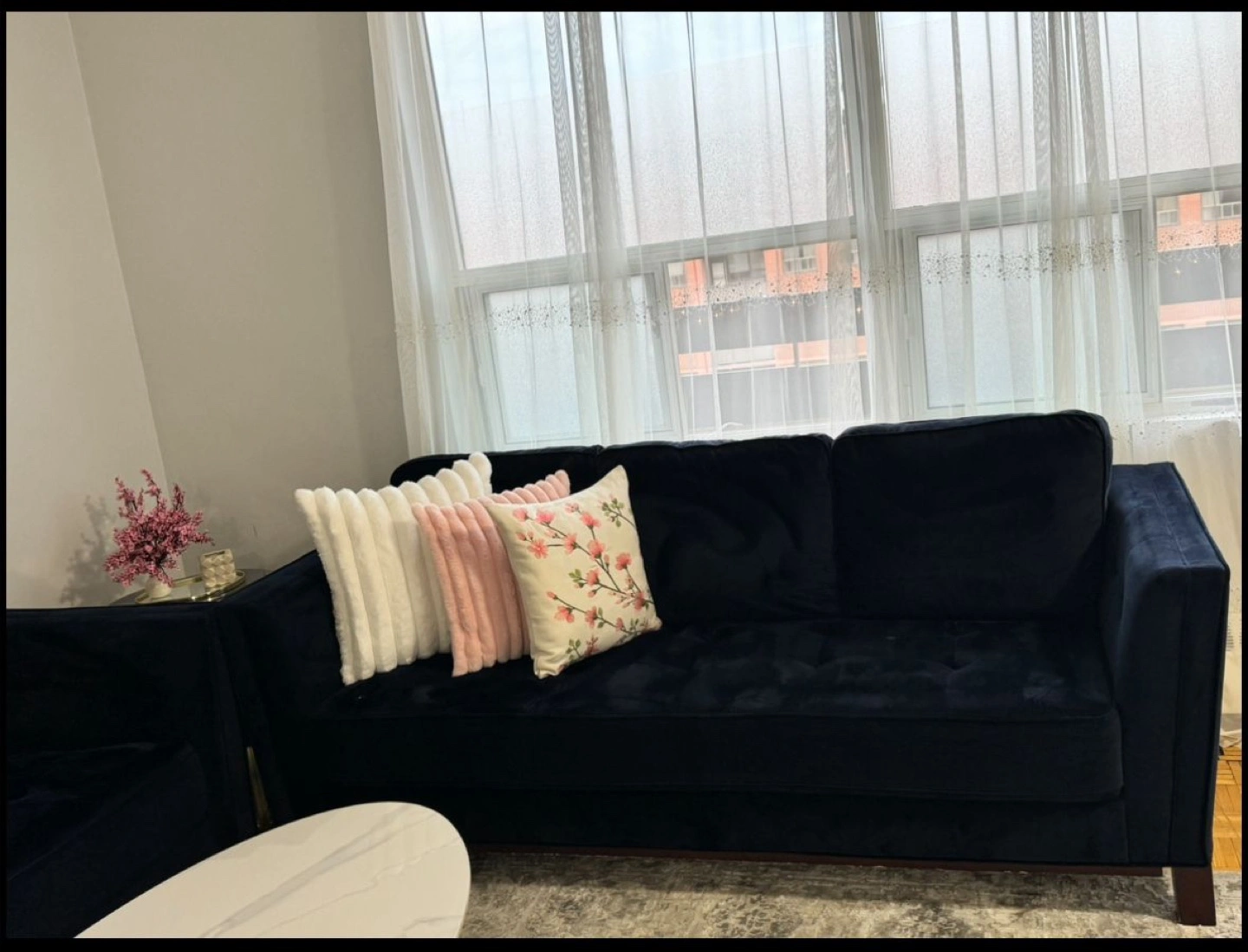 Stylish and elegant sofa set including: • Two 3-seater sofas • One 2-seater sofa Very well maintained and in great condition – clean, no damages. The color and design are classy and fit well with any living room decor.