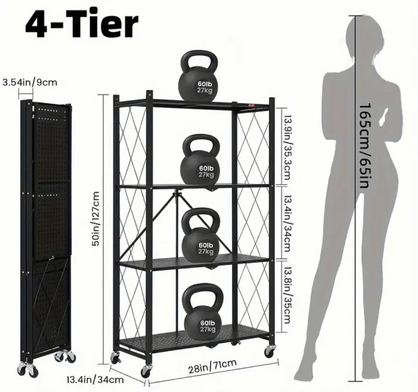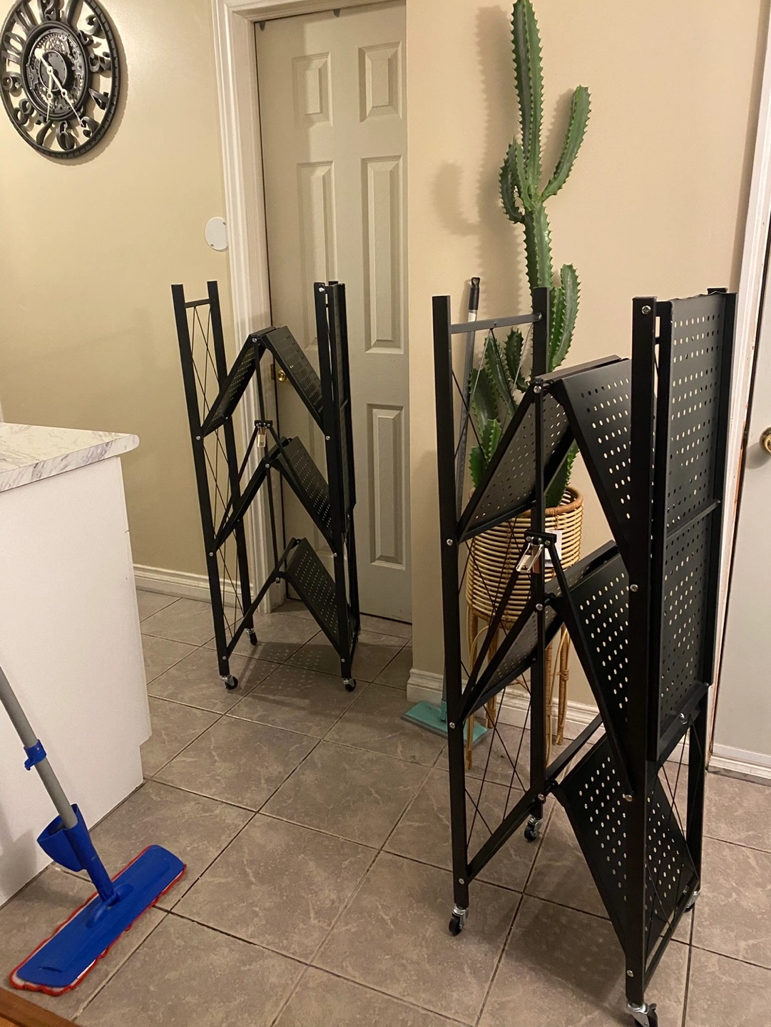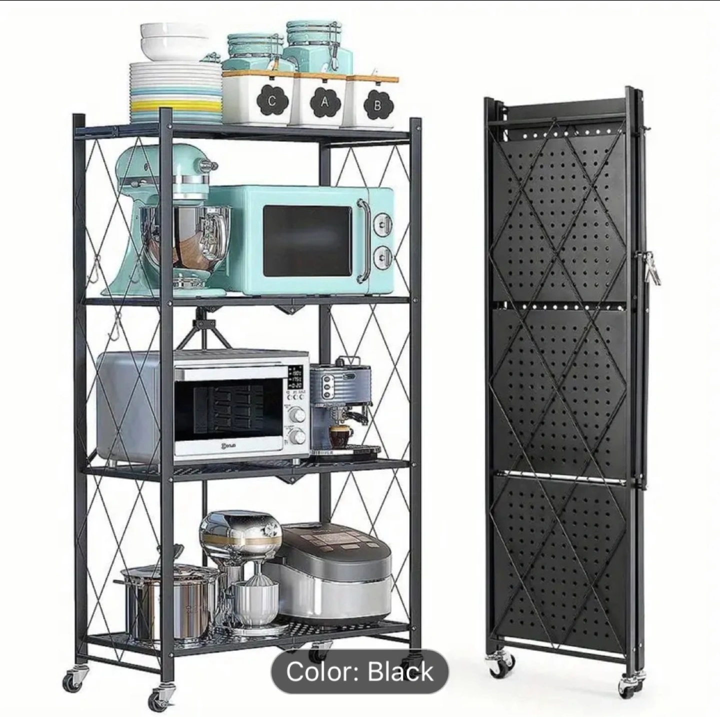 BRAND NEW TWO METAL 4-TIER FOLDABLE STORAGE RACK W/ WHEELS