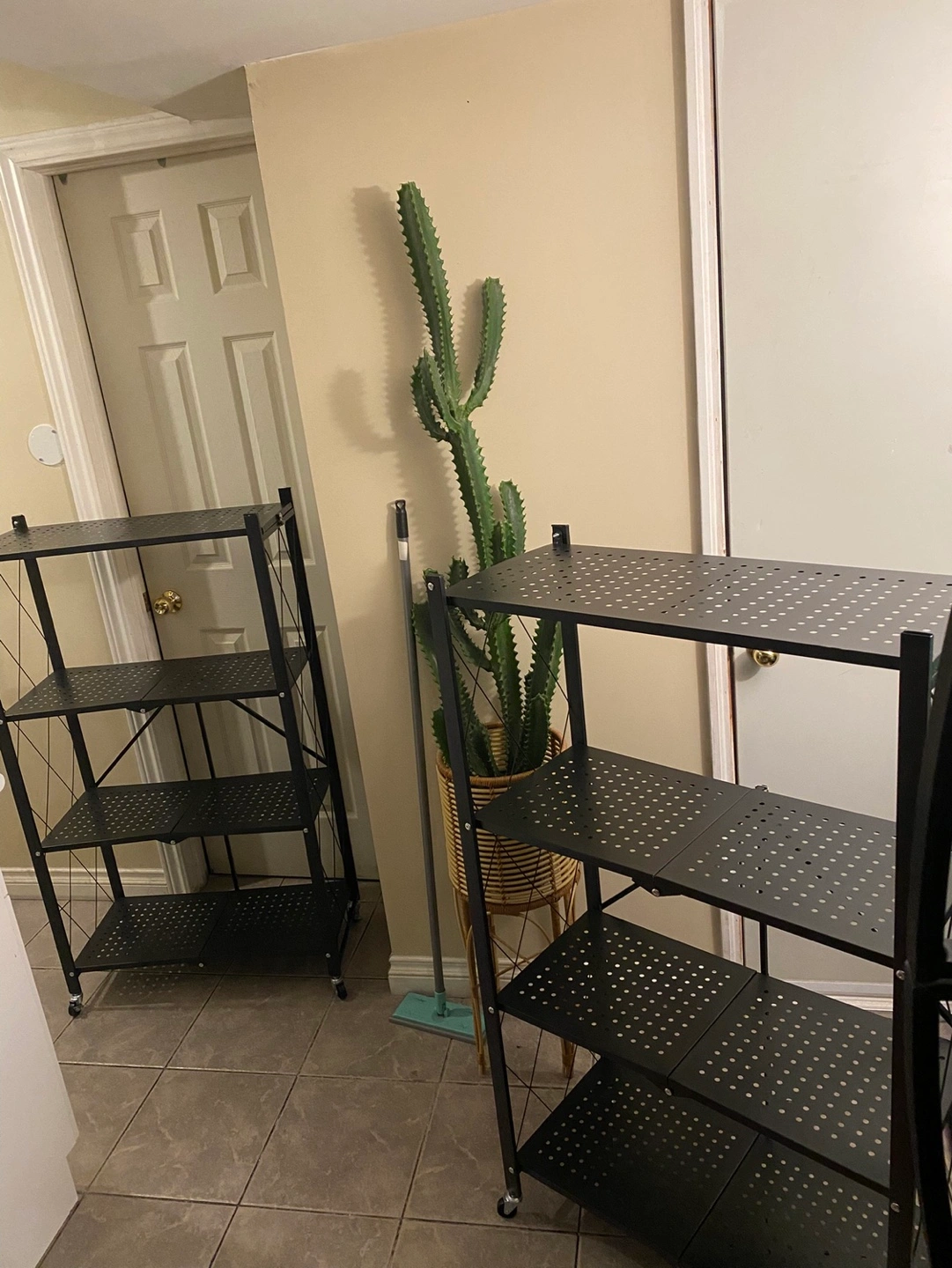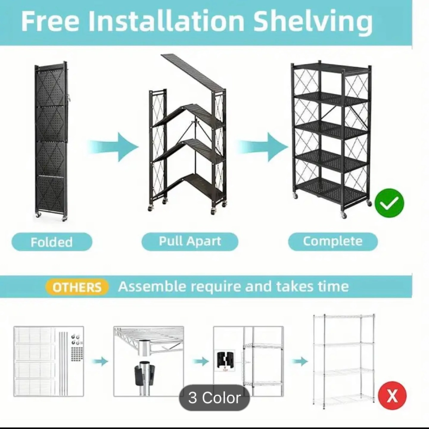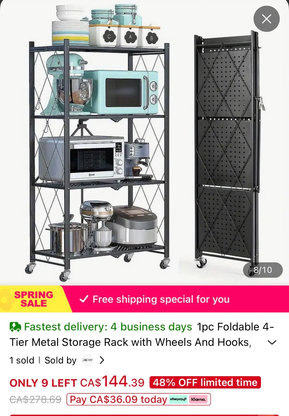 BRAND NEW TWO METAL 4-TIER FOLDABLE STORAGE RACK W/ WHEELS