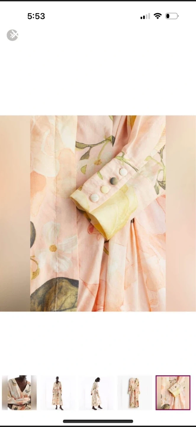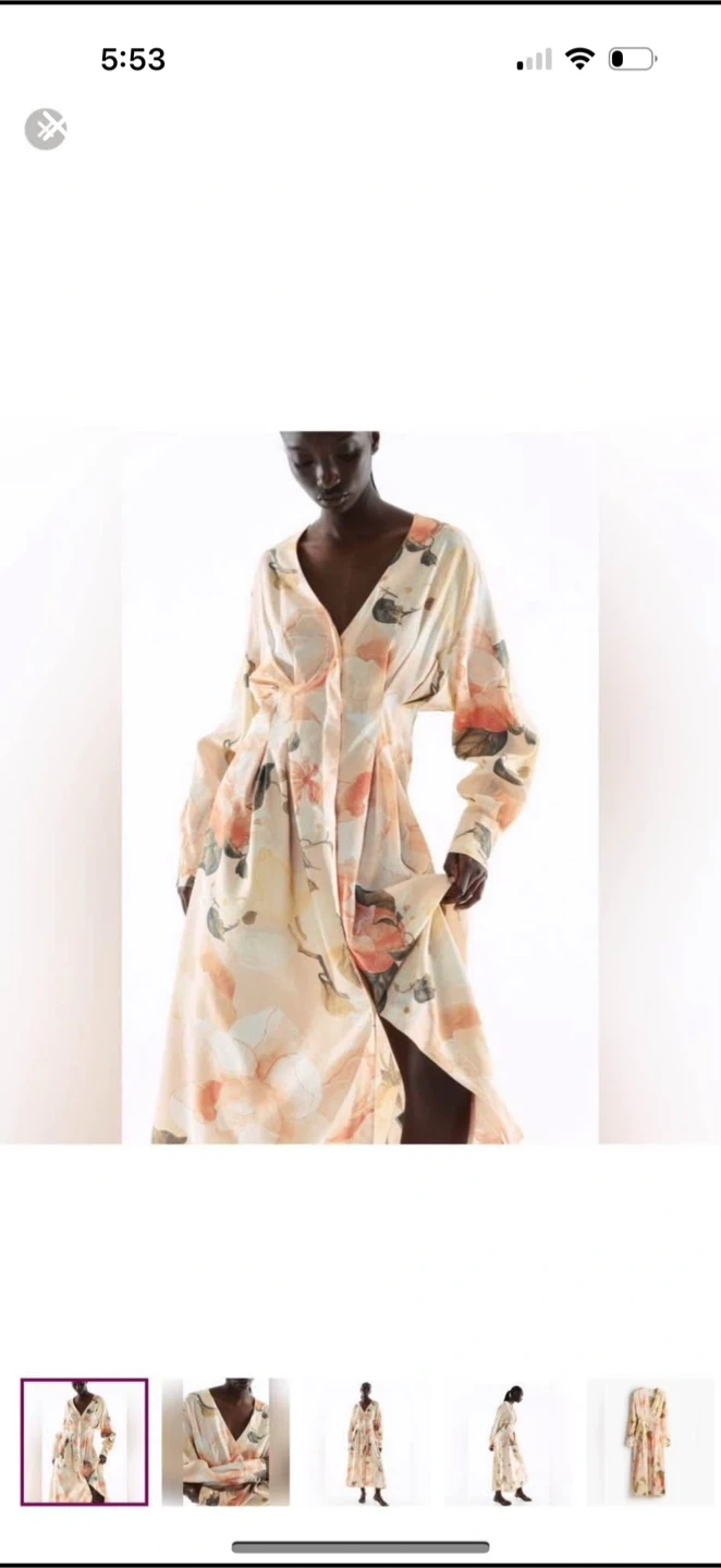 This is a beautiful floral print maxi dress. It has a V-neck and long sleeves with buttoned cuffs. The dress is perfect for a special occasion or a night out. It was a present, never worn. Brand new.