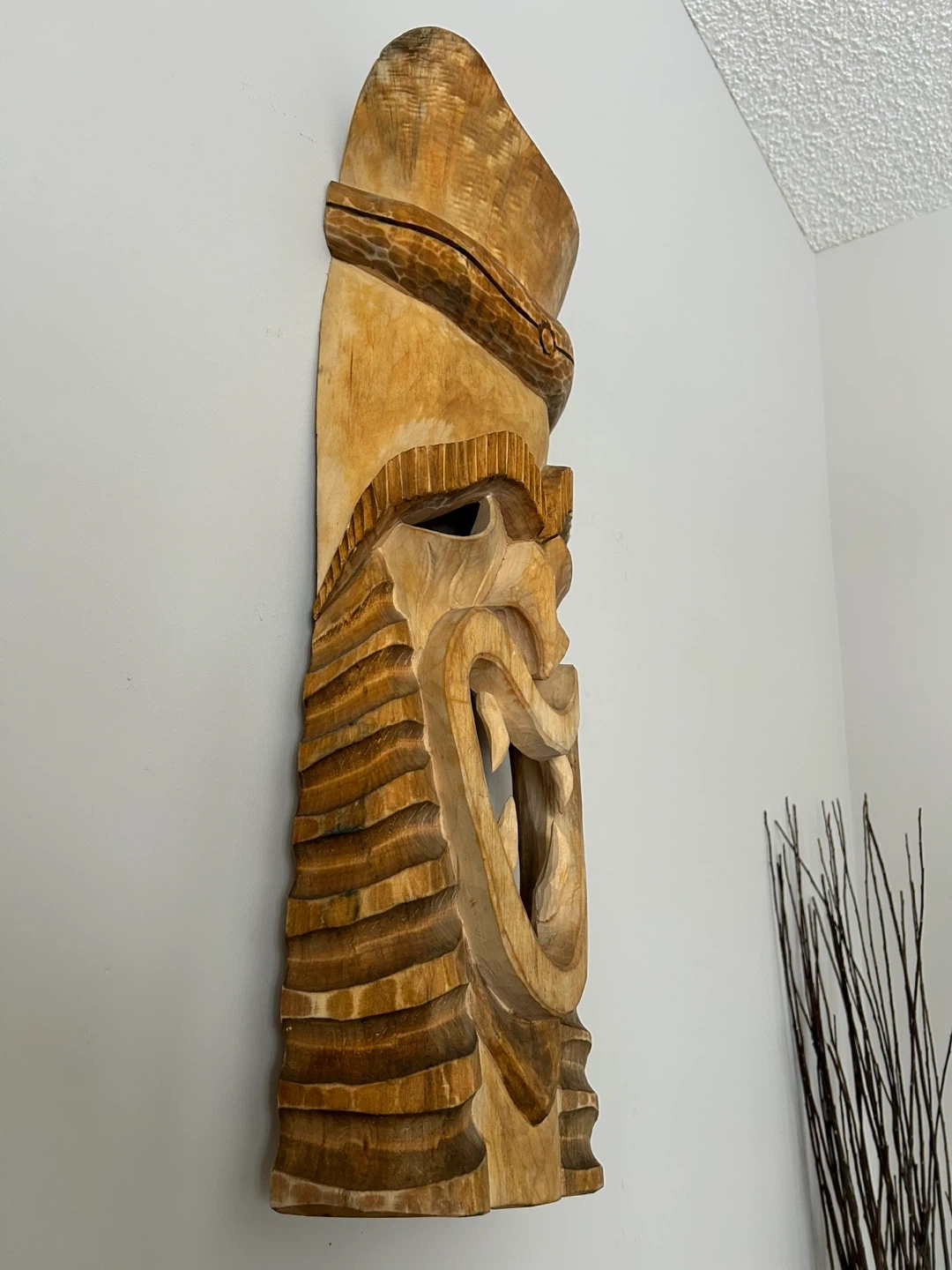 Large 26” Hand-Carved Wooden Tiki Mask