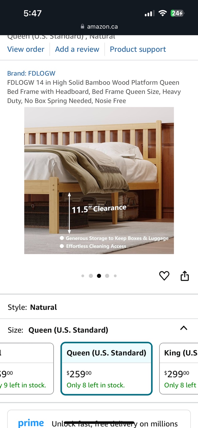 Solid bamboo wood platform bed frame. Queen size. Headboard included. Heavy duty. No box spring needed. Easy assembly. Noise free.