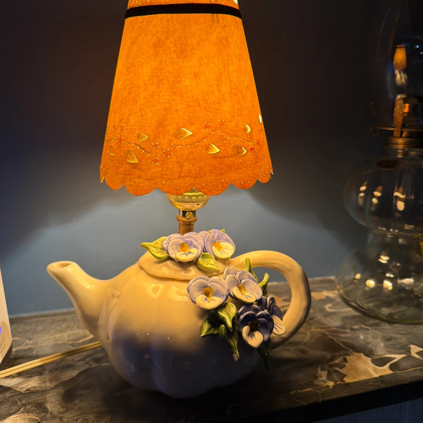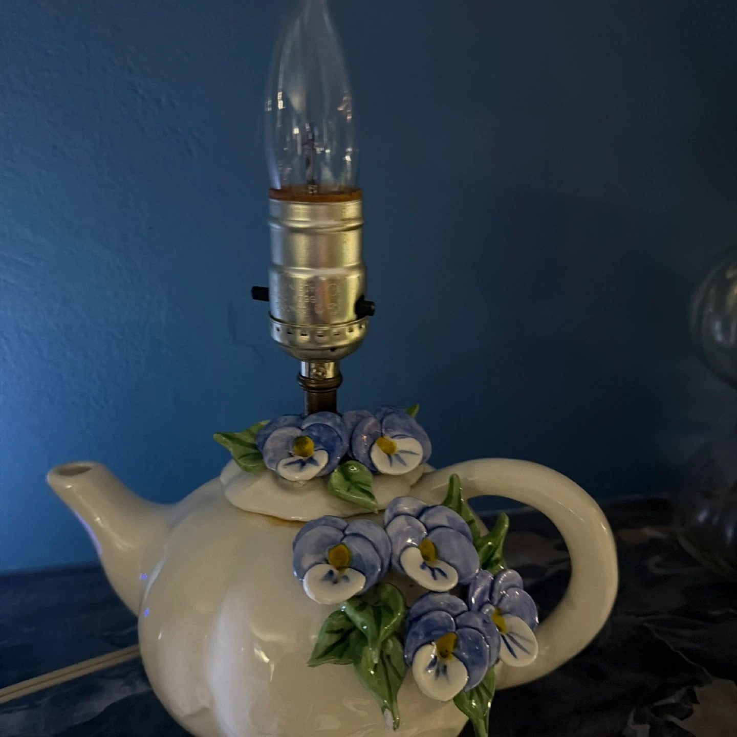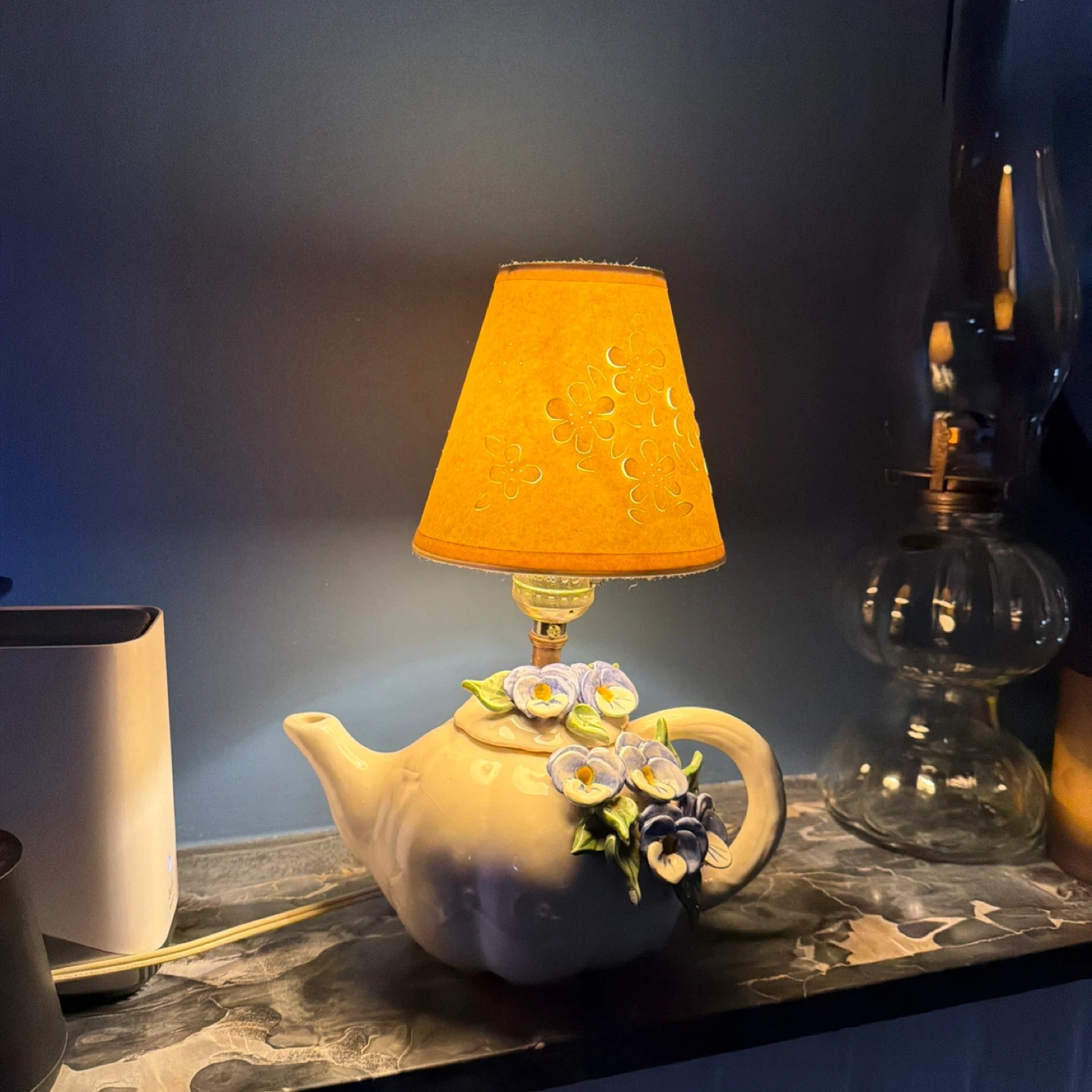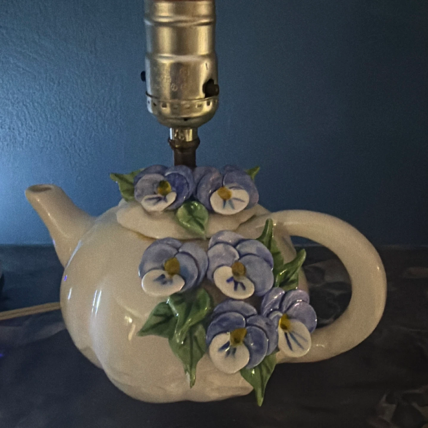 Vintage Ceramic Teapot Lamp with Floral Accents