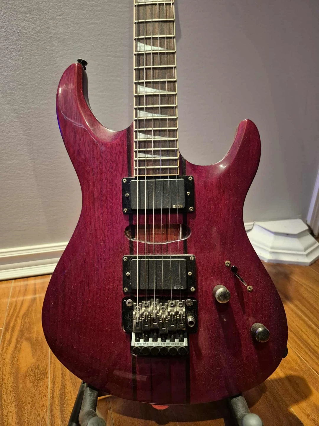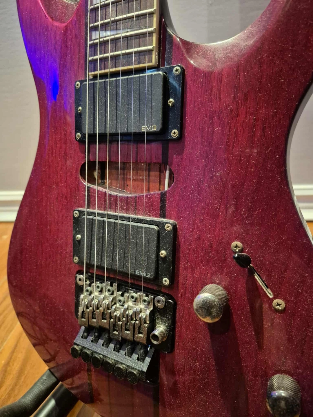 Electric guitar, amazing playability, frets are in very good condition, floyd rose original, light weight instrument.