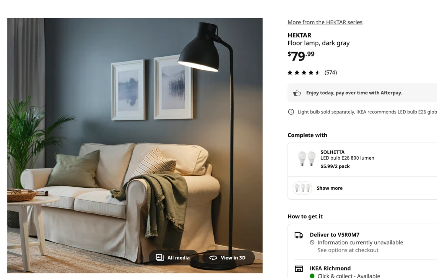 IKEA Hektar floor lamp in dark gray. It's a stylish and functional lighting solution for any room. Light bulb included.