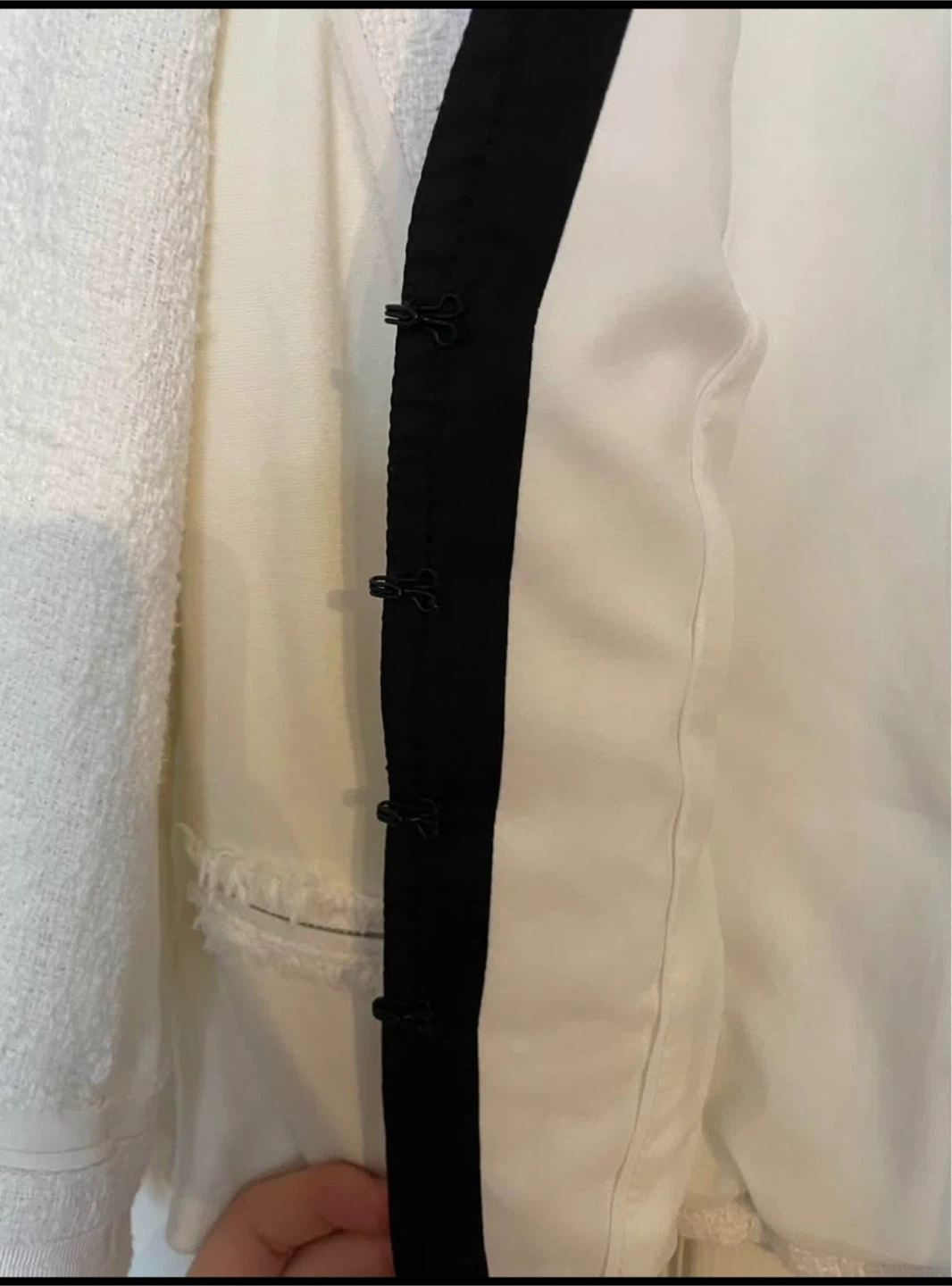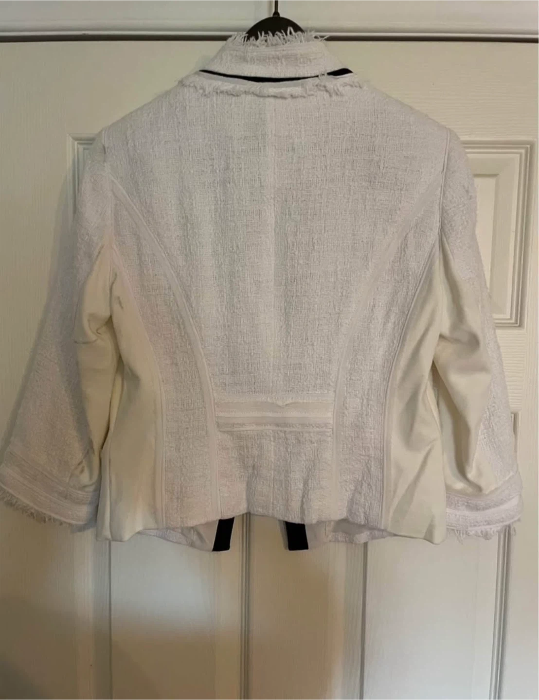 White House Black Market blazer in a size 6. It's a beautiful, structured jacket with a unique tweed texture and stylish details. Perfect for adding a touch of sophistication to any outfit!