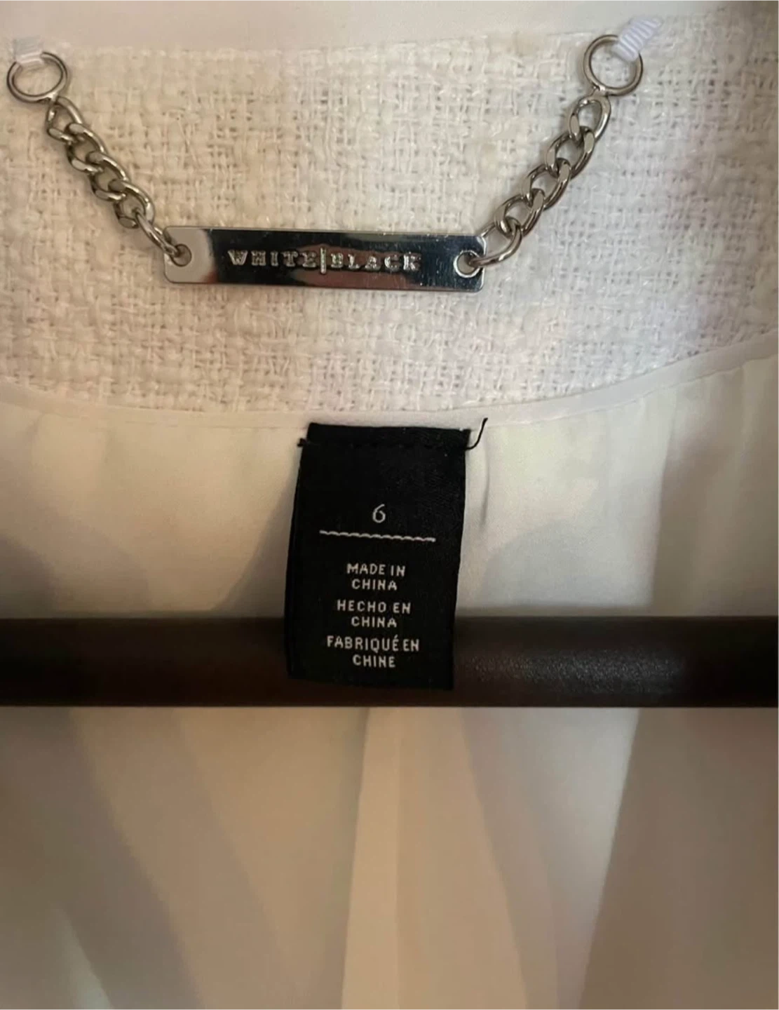 White House Black Market blazer in a size 6. It's a beautiful, structured jacket with a unique tweed texture and stylish details. Perfect for adding a touch of sophistication to any outfit!