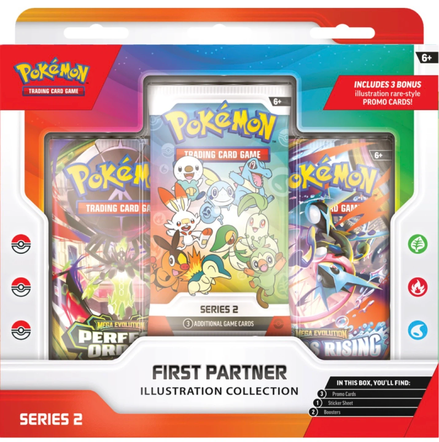This Pokémon Trading Card Game collection includes Series 2 boosters and three bonus illustration rare-style promo cards. You'll also get a sticker sheet. It's for ages 6 and up.
