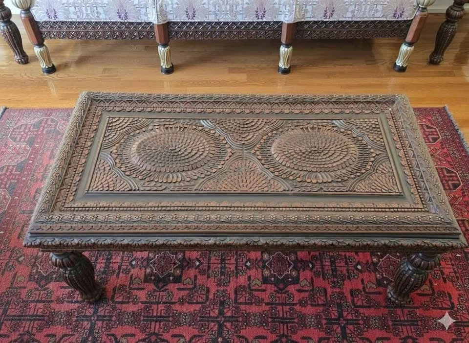Stunning Hand-Carved Rosewood Coffee Table Set