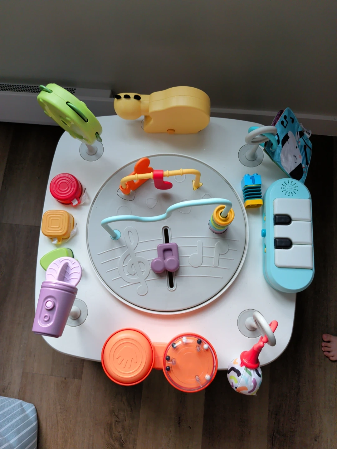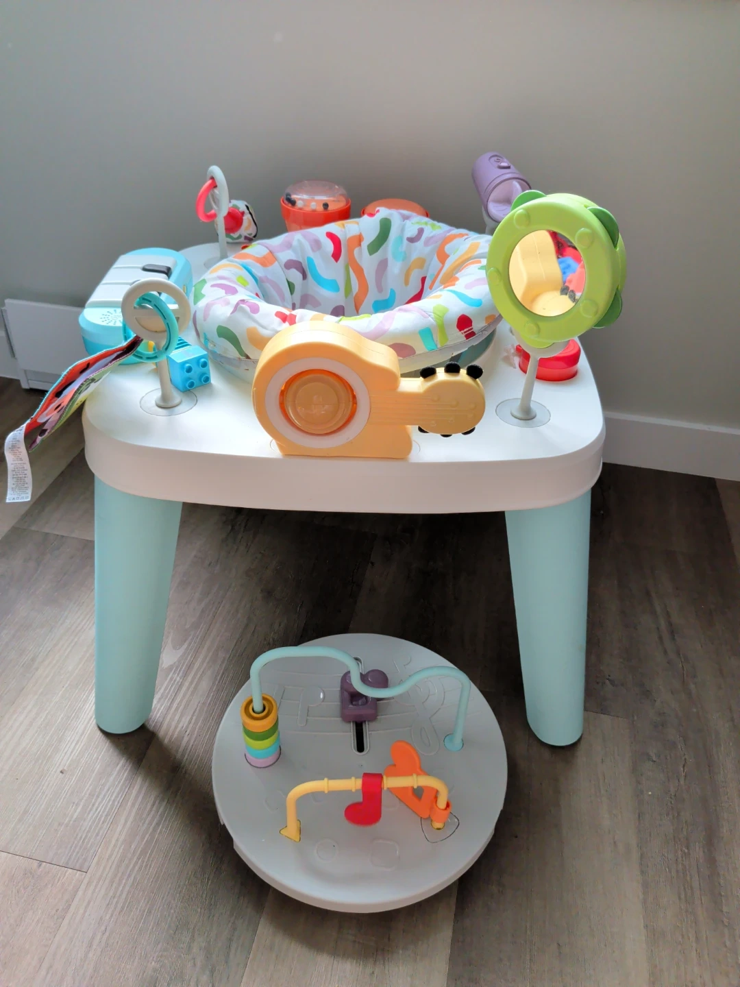 This Fisher-Price 3-in-1 Activity Table is perfect for little ones. It features a piano, drums, and a snail toy for endless entertainment. Includes a comfy seat for baby to play.