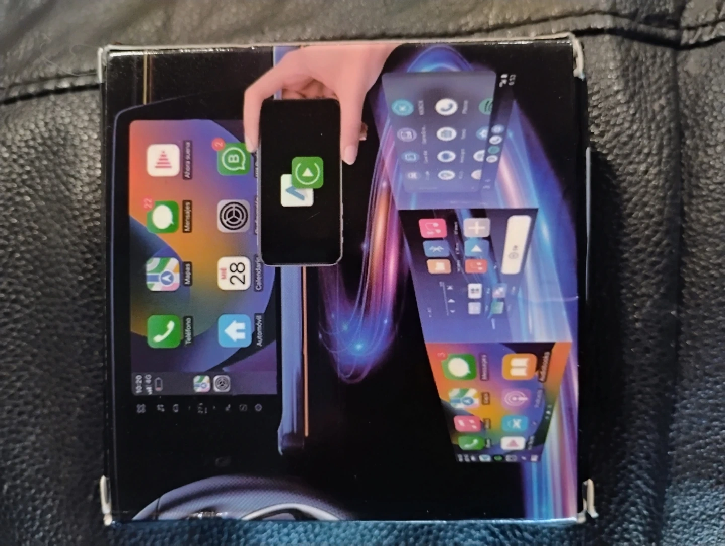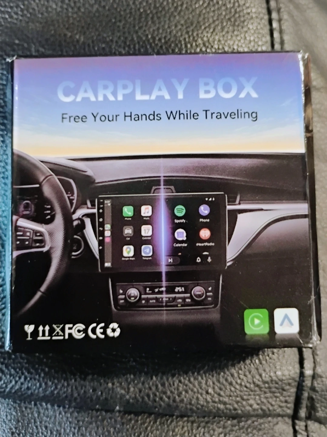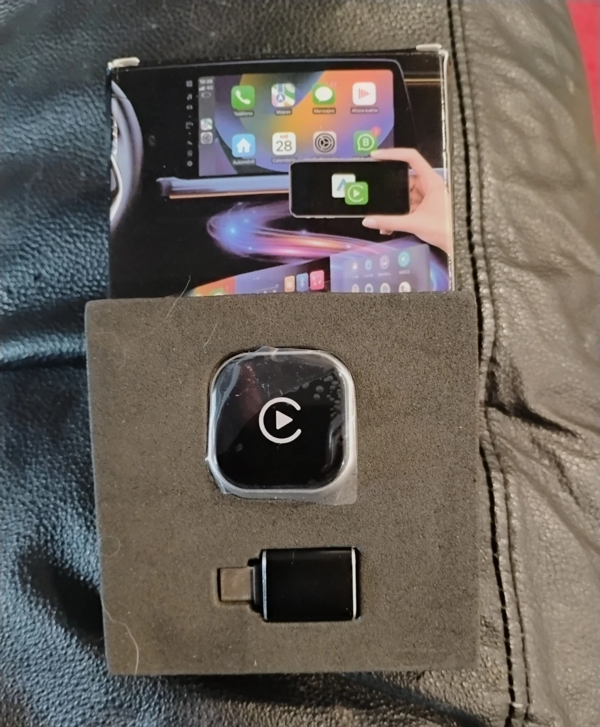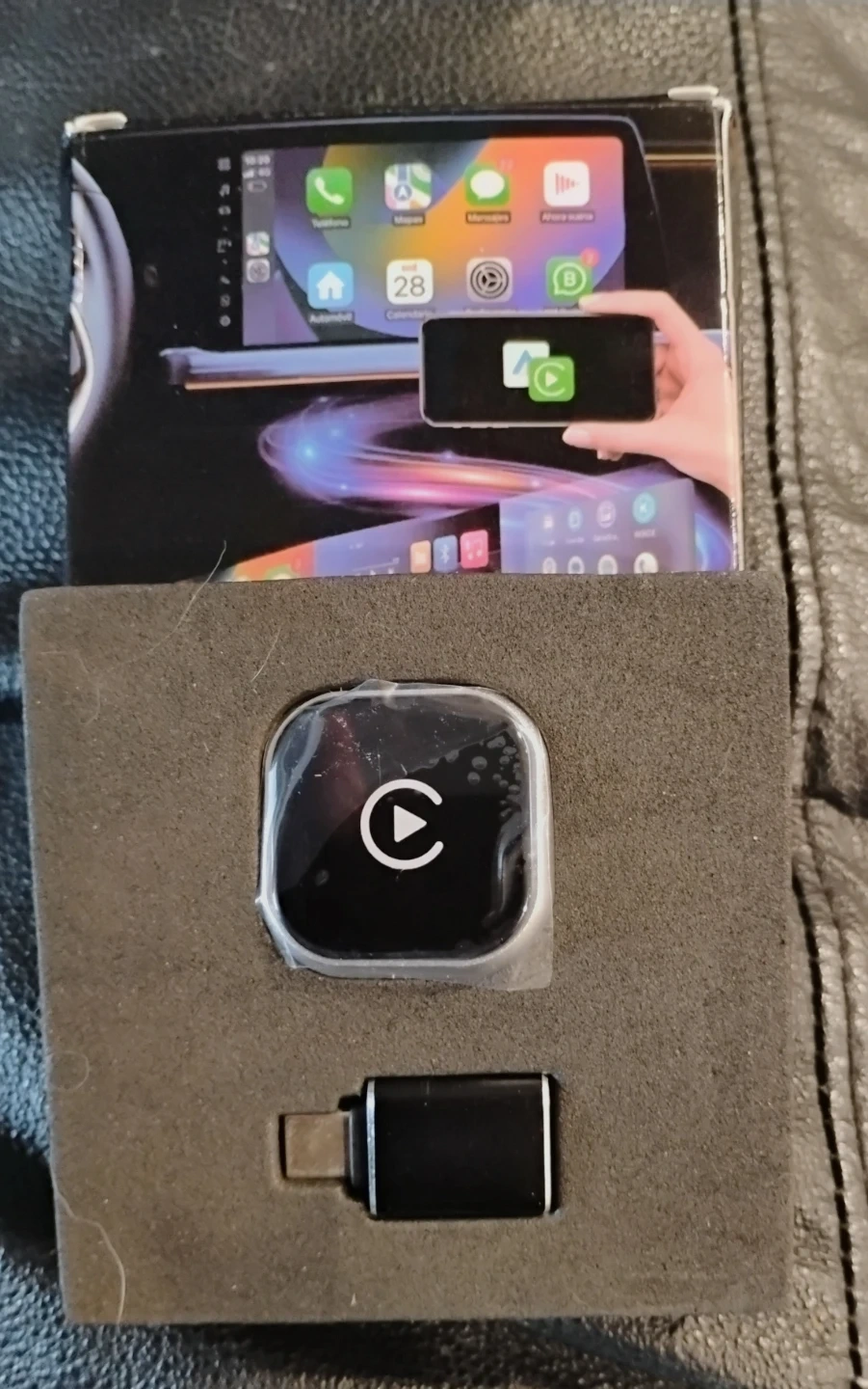 Add wireless Apple CarPlay functionality to your vehicle with this Carplay Box adapter. It's designed to free your hands while travelling. Includes the main adapter and a USB-C connector.