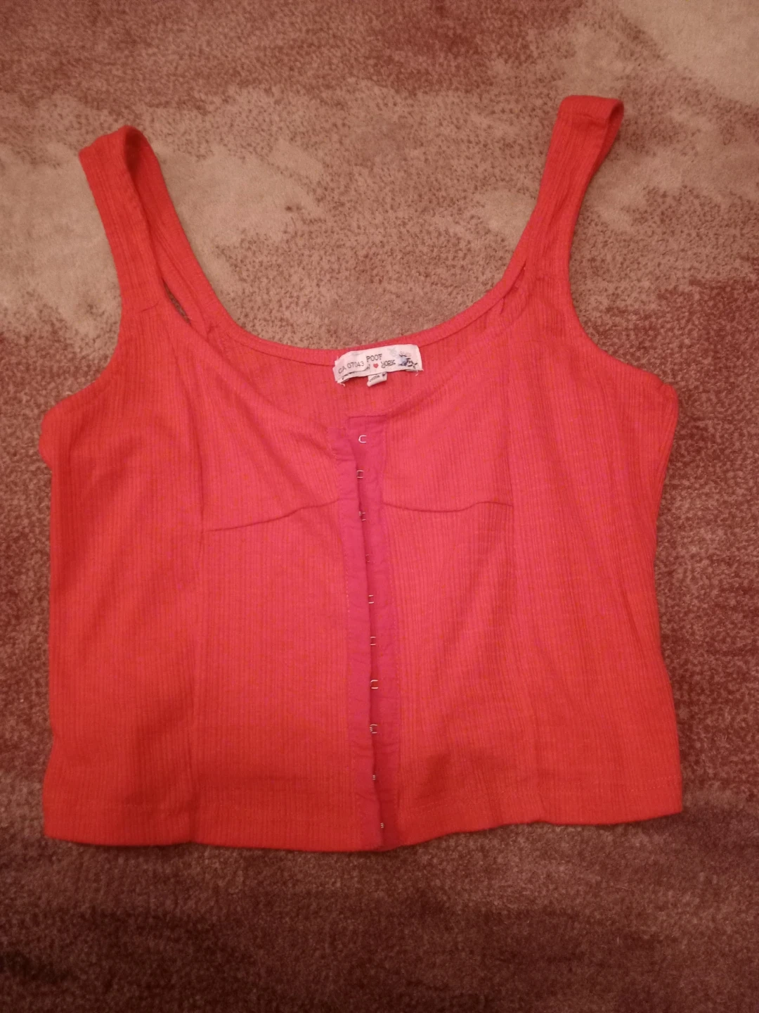 This Poof New York tank top is a vibrant addition to any wardrobe, featuring a flattering scoop neck and button-down front. It's in good condition, ready for a new home.