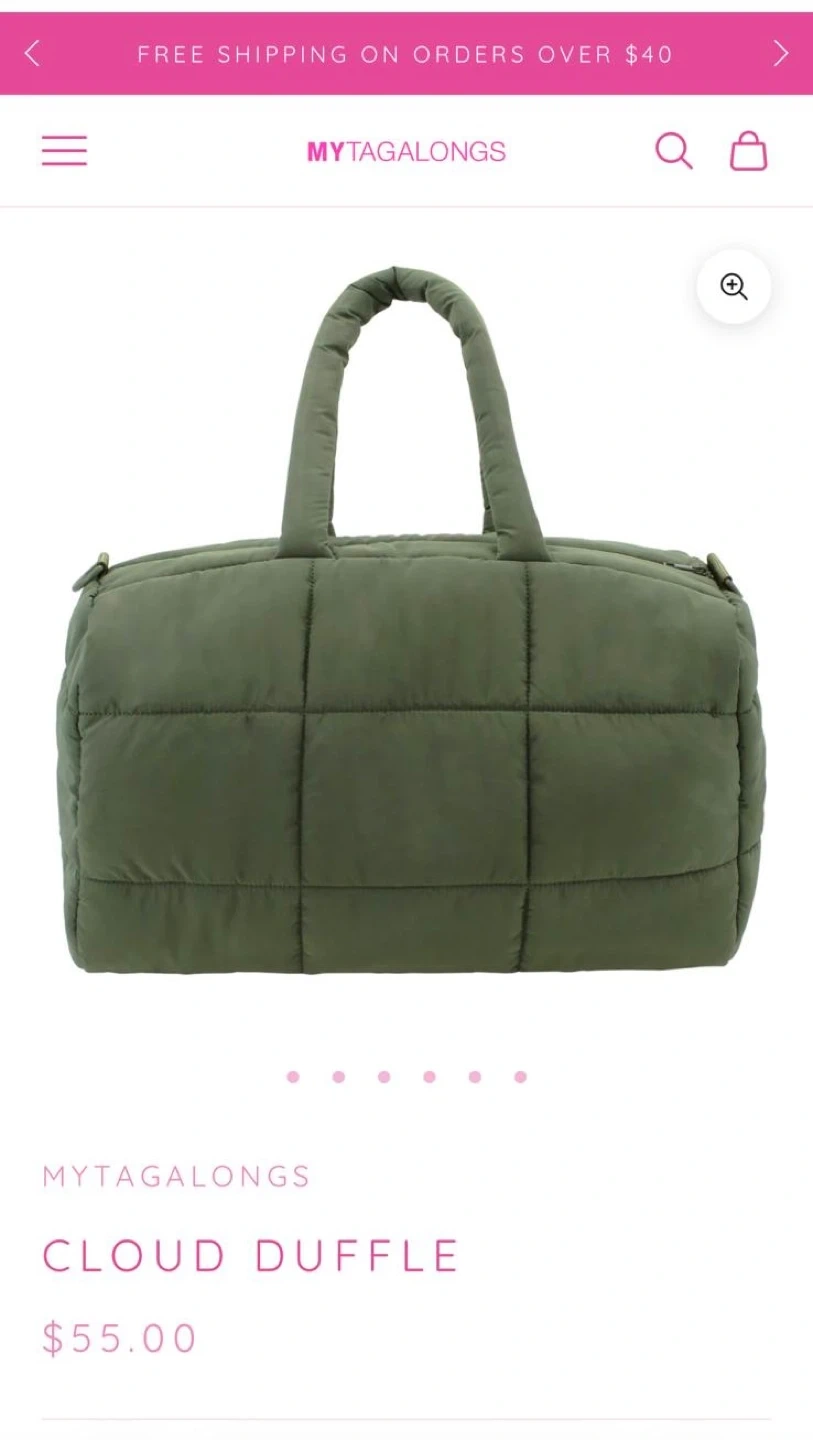This MYTAGALONGS Cloud Duffle is a spacious carry-on bag perfect for weekend trips or daily use. It's made of a lightweight polyester design and features a detachable adjustable shoulder strap, carry handles, and multiple interior pockets for organization. Wherever your day takes you, it's a convenient carry-all option!