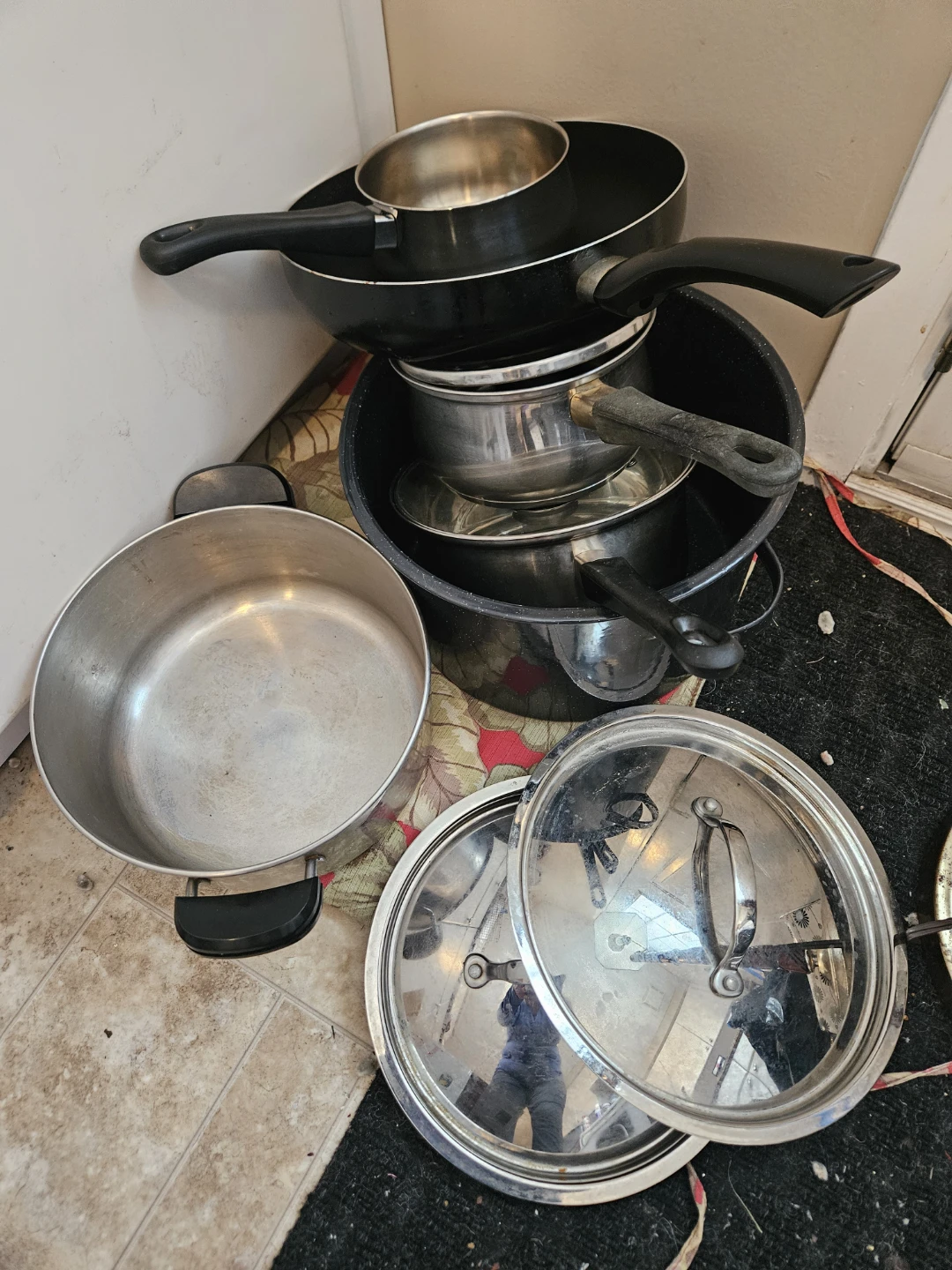 This is a collection of pots and pans. Includes various sizes and styles. Comes with some lids.