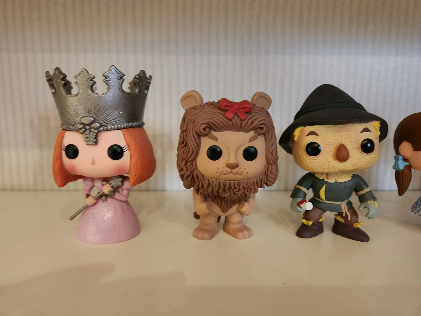 Collection of seven Wizard of Oz Funko Pop! Vinyl figures. Includes Dorothy, Scarecrow, Tin Man, Cowardly Lion, Wicked Witch, Glenda the good witch and the winged monkey. Excellent condition, kept in a smoke-free home. includes Tin Wizard of Oz poster.