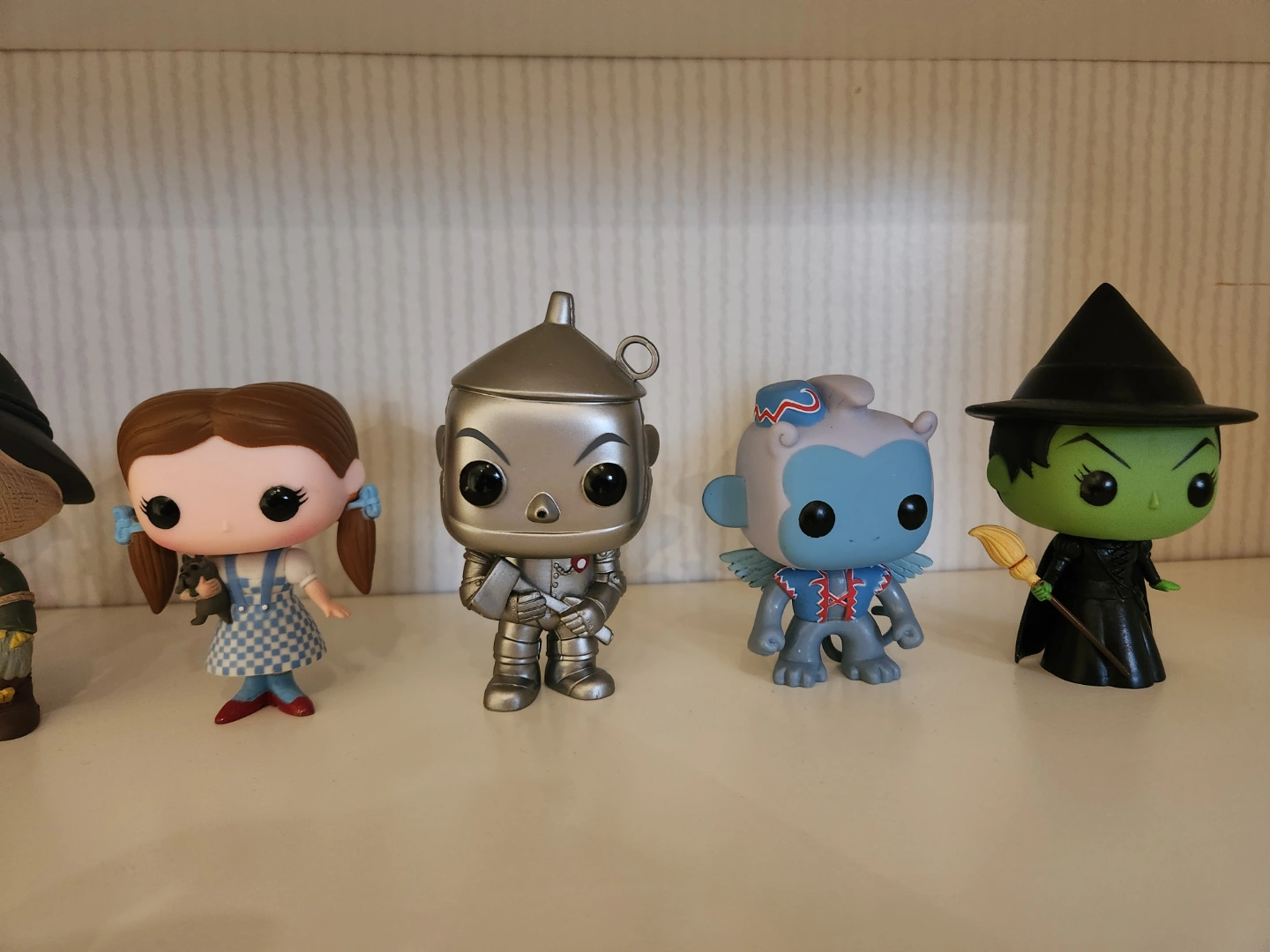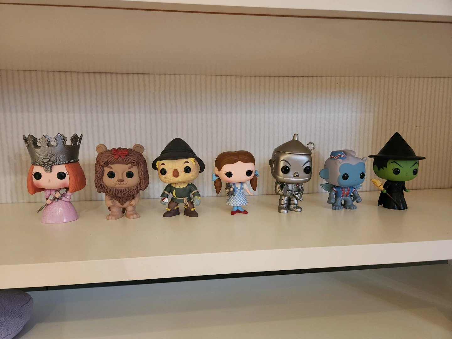 Collection of seven Wizard of Oz Funko Pop! Vinyl figures. Includes Dorothy, Scarecrow, Tin Man, Cowardly Lion, Wicked Witch, Glenda the good witch and the winged monkey. Excellent condition, kept in a smoke-free home. includes Tin Wizard of Oz poster.
