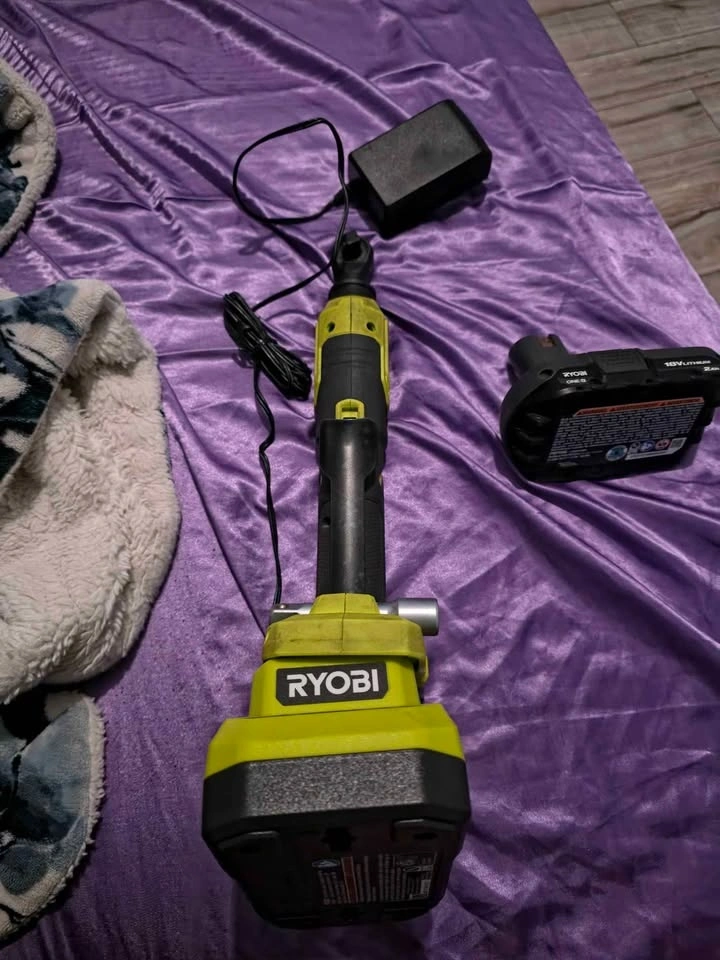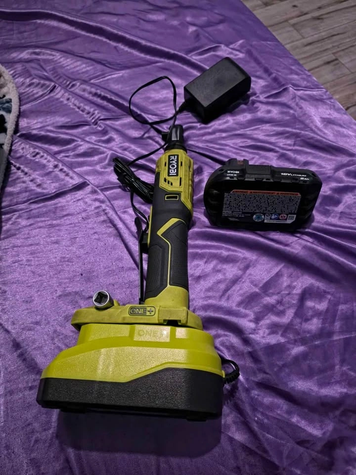 Will be cleaned for pick-up. RYOBI 18V ONE+ HP Compact Brushless 3/8 in. High Speed Ratchet Kit with 2.0 Ah Battery and Charger. Features variable speed metal paddle trigger, 3/8 in. anvil with pin detent, 20% more compact ratchet head for access to tight spaces, 4-position rotating head, up to 40 ft./lbs. of torque, ONE+ HP Technology for up to 2X more speed with up to 460 RPM, and dual on-board LED worklights.