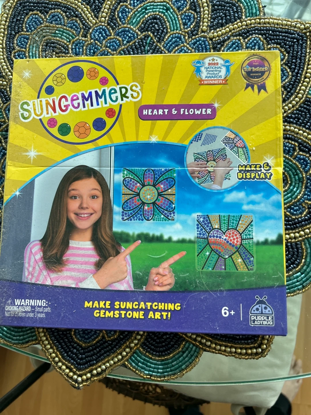 This Sungemmers kit lets you make suncatching gemstone art with heart and flower designs. It's suitable for ages 6 and up. Includes gems to make colourful art pieces.