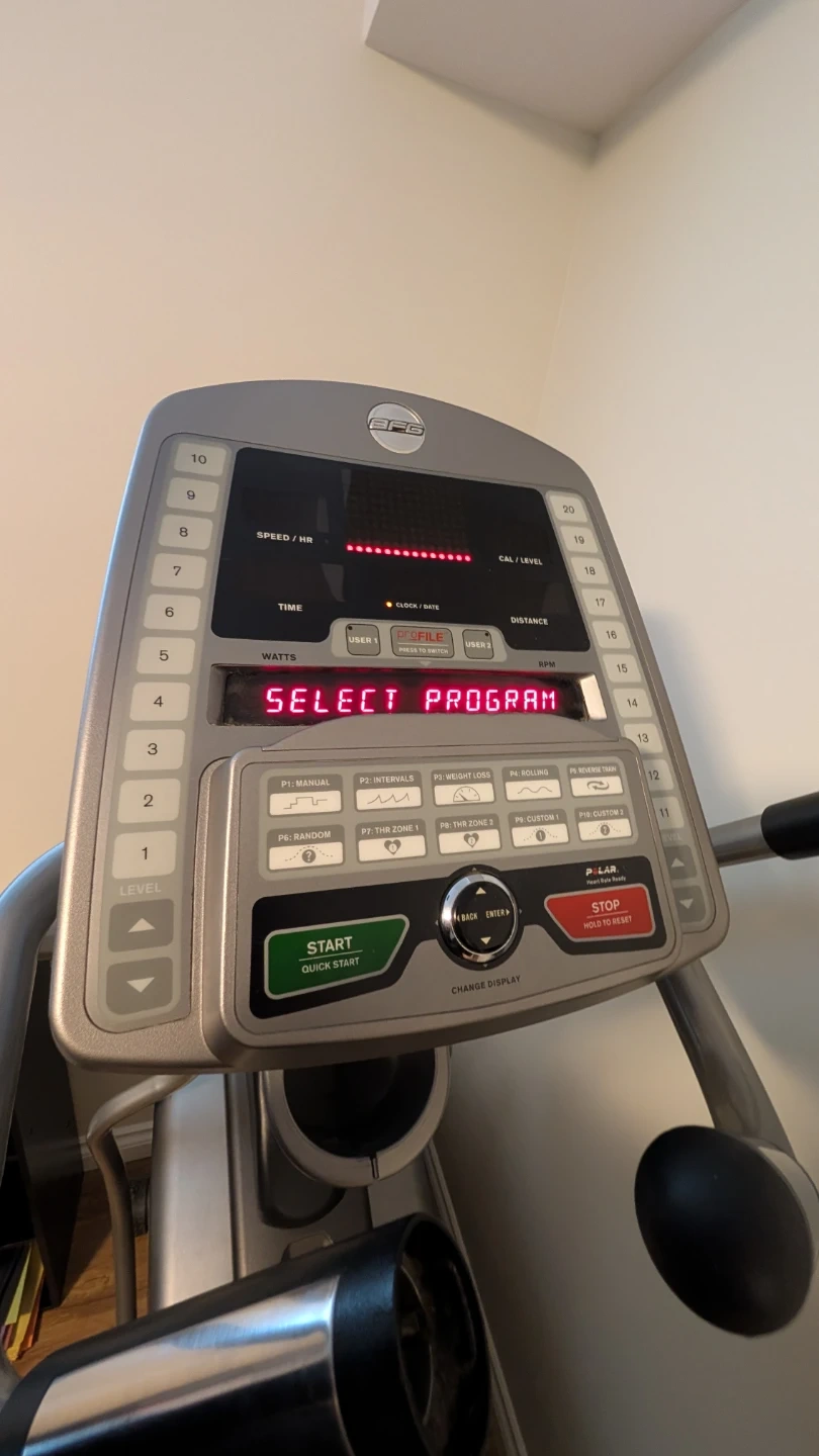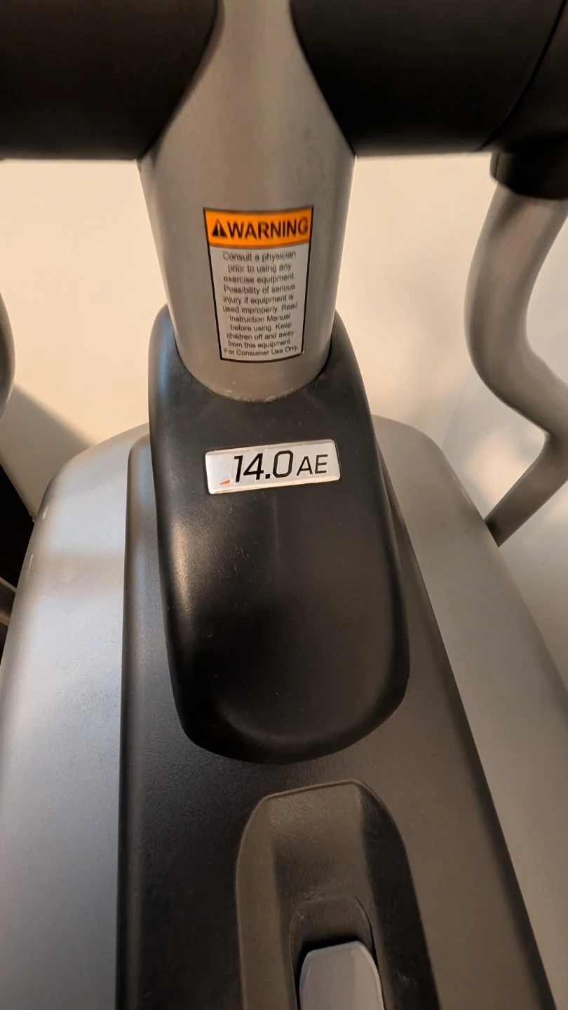 Spirit Fitness elliptical trainer with a 14.0 AE model number. This machine offers various workout programs and adjustable resistance levels. It's designed for a smooth, low-impact cardio workout. The display console shows speed, time, distance, and calories burned.