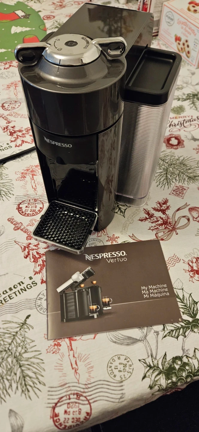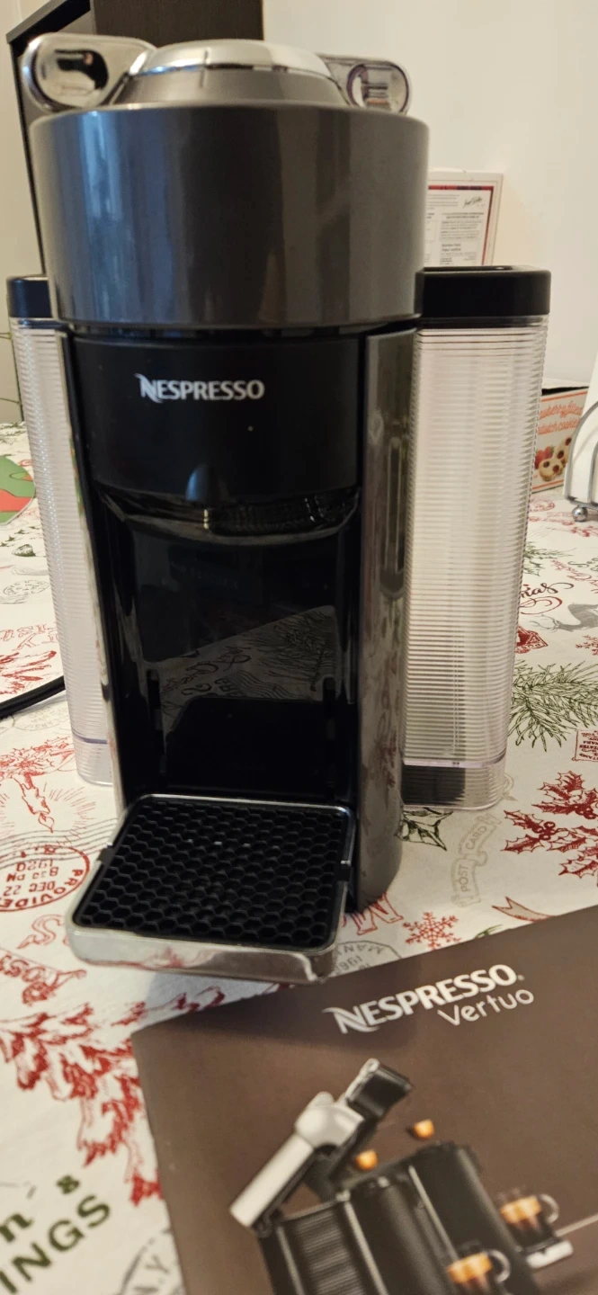 This Nespresso Vertuo coffee machine makes single-serve coffee and espresso. It's a compact unit for any kitchen counter. Easy to use for your morning brew!