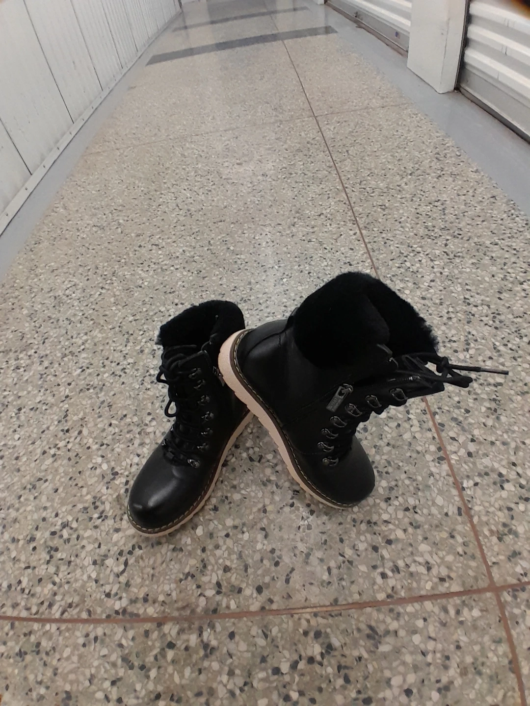 feature a cozy fur lining for extra warmth. They have a durable rubber sole with good traction. Lace-up front for a secure fit women's Size 7