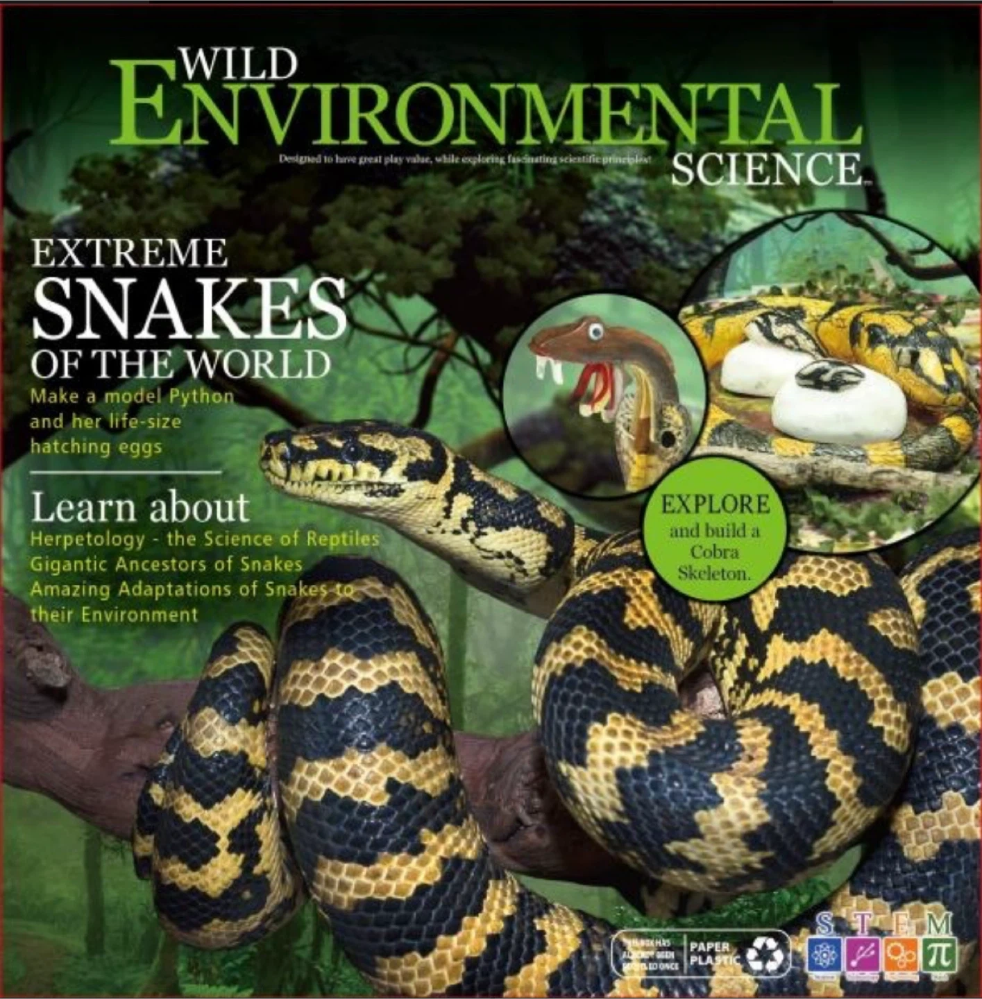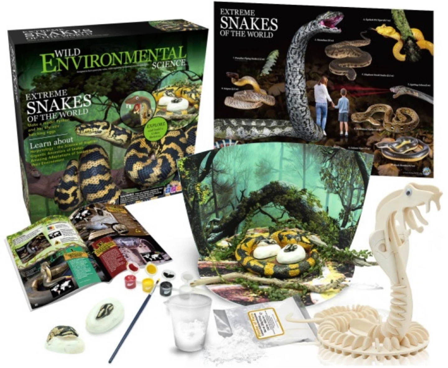Explore the world of snakes with this Wild Environmental Science kit! It includes everything you need to make a model python and her life-size hatching eggs, and to explore and build a cobra skeleton. This kit is designed to have great play value, while also teaching fascinating scientific principles