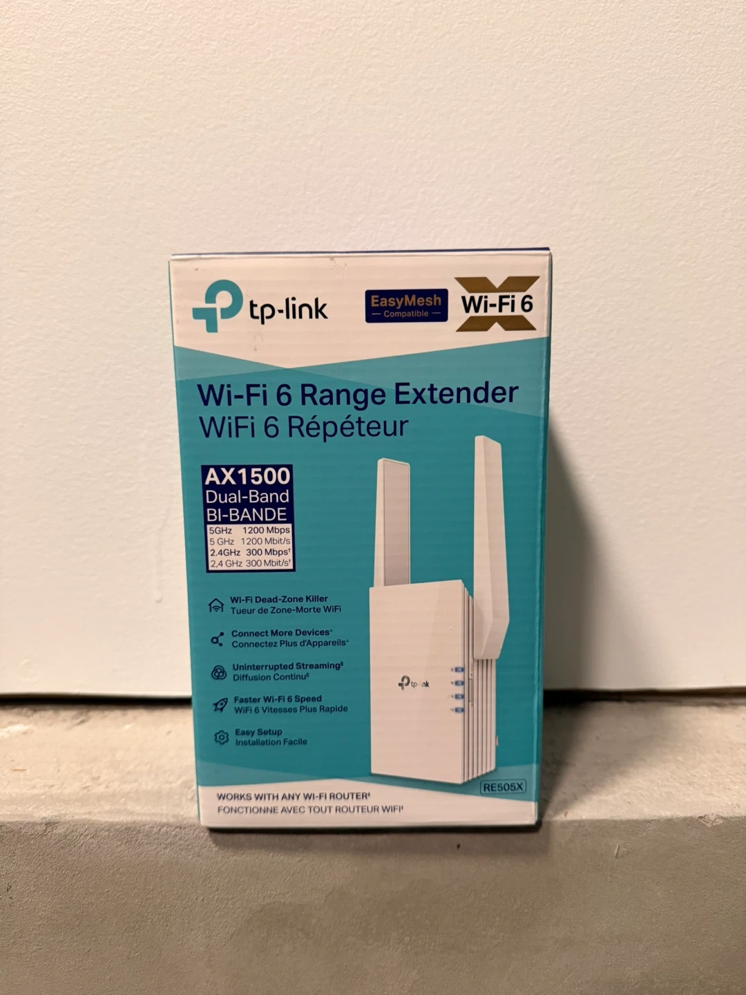 Selling a brand new TP-Link AX1500 Wi-Fi 6 Range Extender! This range extender is designed to eliminate Wi-Fi dead zones with powerful Wi-Fi. It features: