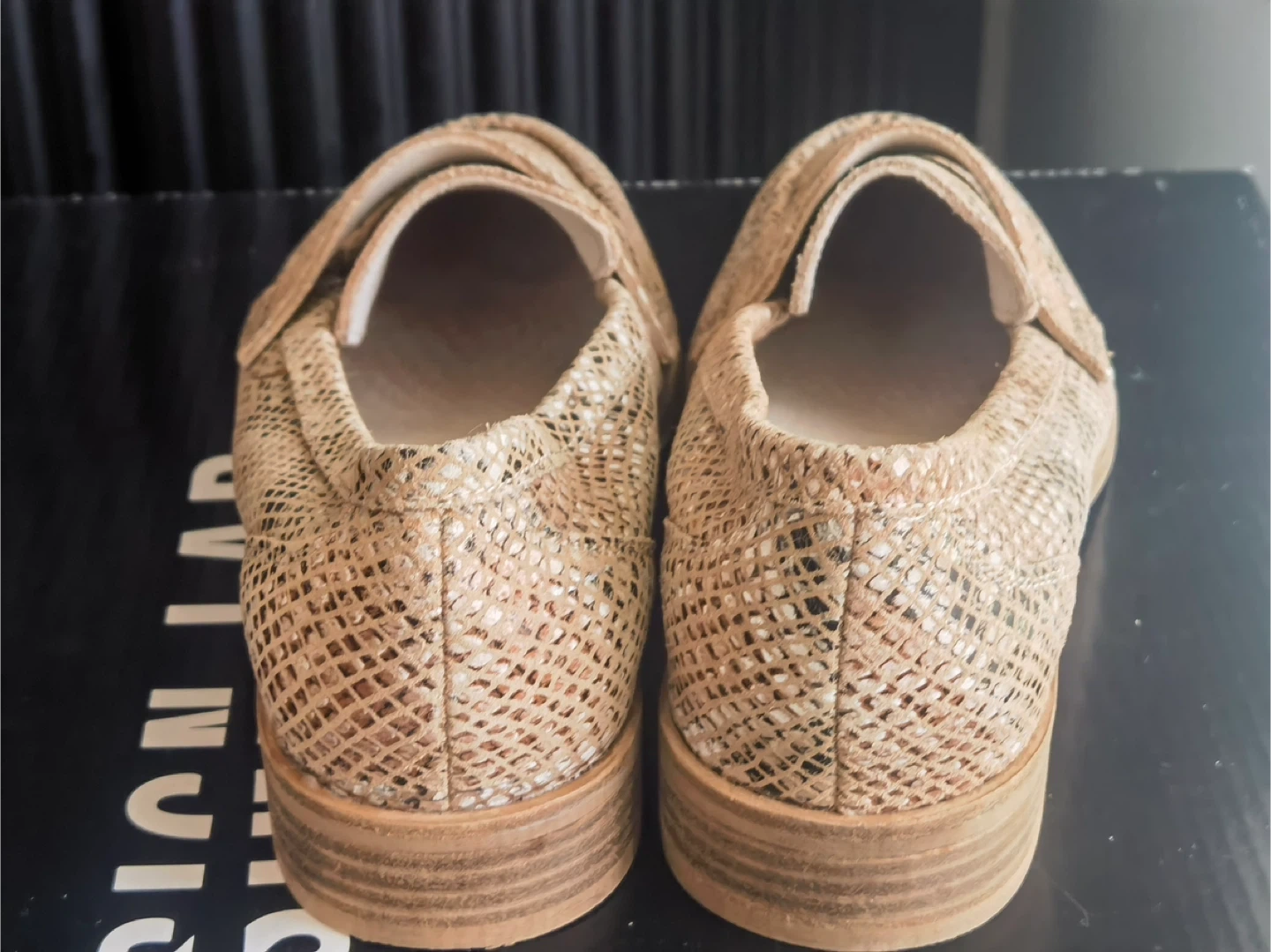 Stylish beige snakeskin print loafers from Joseph Seibel. These shoes feature a comfortable slip-on design with a low heel. Perfect for everyday wear. Size 8.