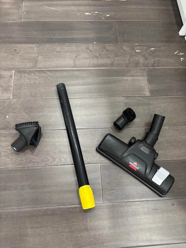 This BISSELL PowerForce Bagless Canister Vacuum works well. It has strong suction and is lightweight and easy to move around. Both tubes are cracked but have been securely taped and are fully usable, as seen in the picture. Selling as is, priced low at $20 due to condition. Great budget option if you just need a working vacuum. Pickup only.