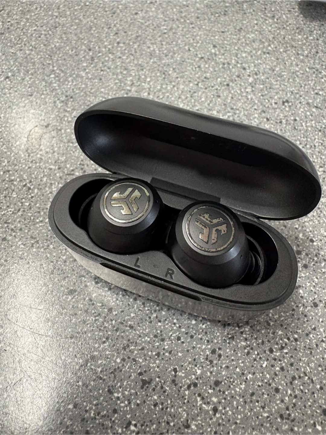 JLab JBuds wireless noise cancelling earbuds (1 year old). Includes charging case. It's great for listening to music and taking calls on the go!