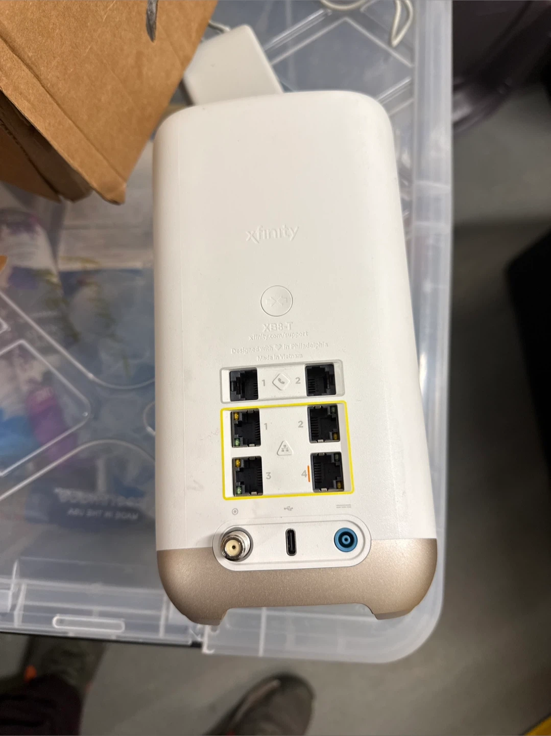 This Xfinity XB7-T is a WiFi gateway modem. It includes an Ethernet cable and power adapter. Perfect for home internet setup!