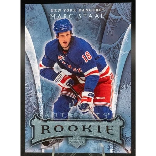 This is a 2007-2008 Artifacts Blue Rookie card of Marc Staal, numbered 03/25. The card is in a penny sleeve and top-loader. Feel free to message if you have any questions!
