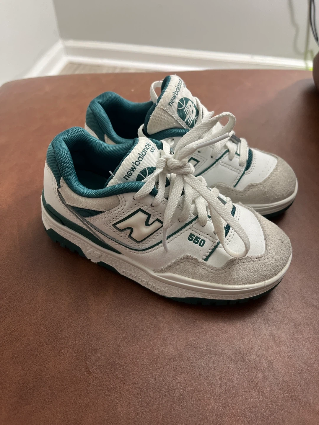 Buy & SellNew Balance 550 Sneakers White/GreenNew Balance 550 Sneakers White/Green$48New Balance 550 sneakers in white and green. Lace-up closure. Suede and leather accents. These shoes offer a classic athletic look.ConditionLike newAge0-5 yearsWHERE TO MEETCheck LocationView MapSELLERverifiedTatianaHackensack811 review0 chats·0 favorites·2 viewsSEND CHAT TO SELLERHi Tatiana! I’m interested in your listing.Hi Tatiana! I’m interested in your listing.Get the Karrot app to chatSign In to chat