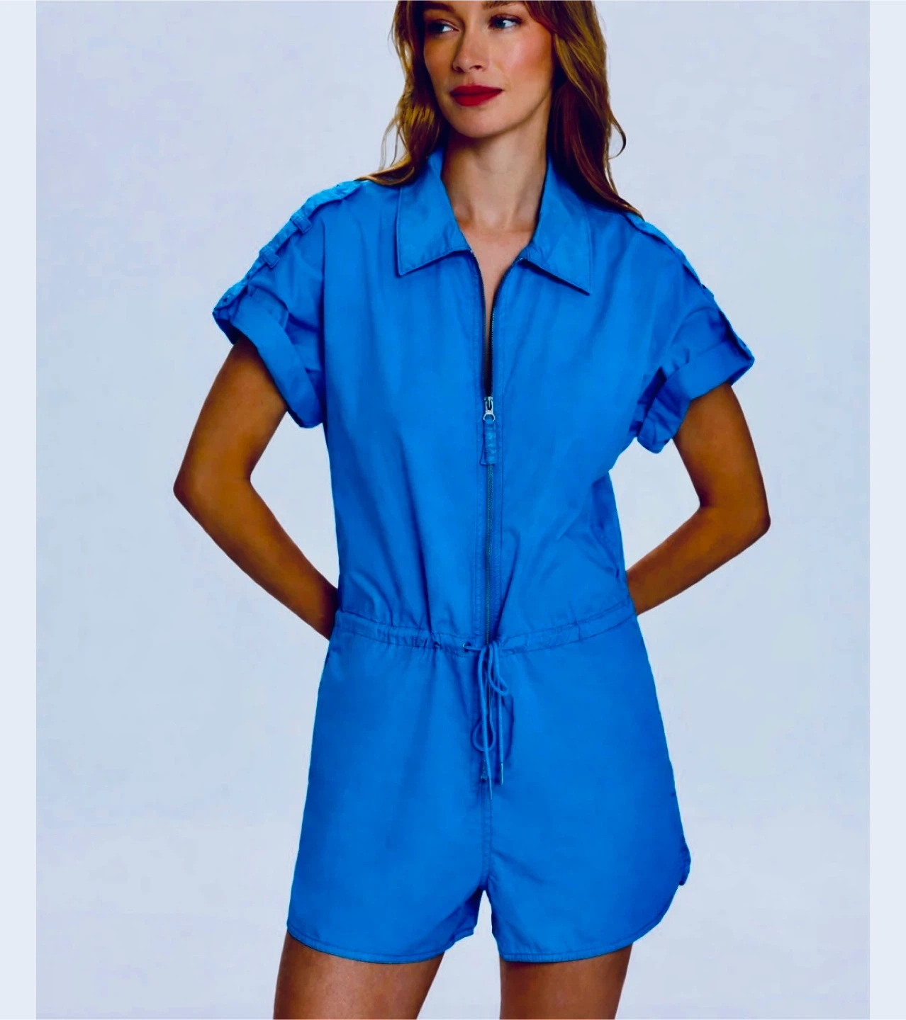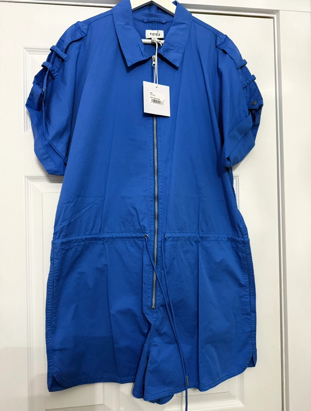 This Pistola "Meg" romper comes in a vibrant purist blue colour. It features a front zipper closure and a drawstring waist. Size XL.