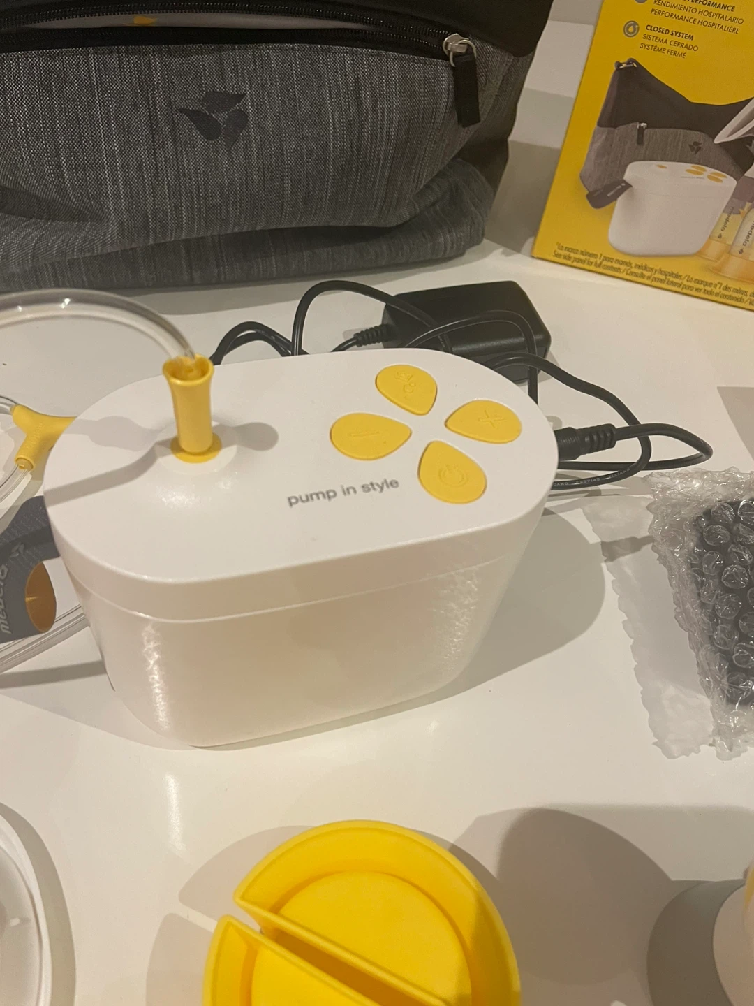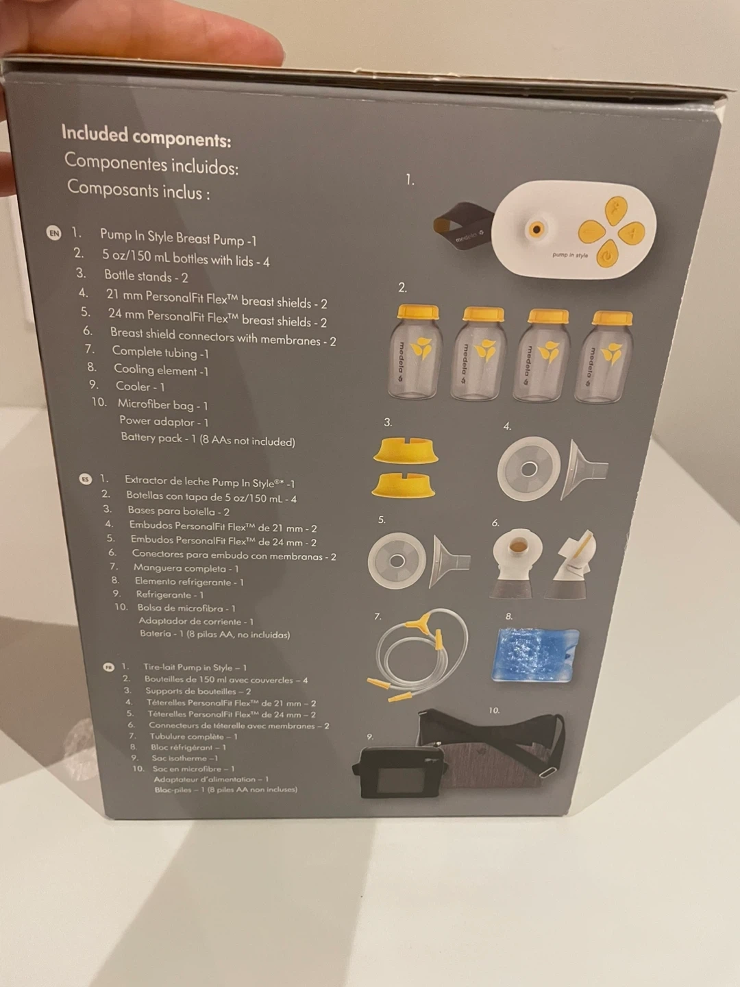 This Medela Pump In Style double electric breast pump comes with everything you need to get started. It includes 5 oz/150 mL bottles, breast shields, tubing, and a power adapter. This pump is designed for hospital performance and is easy to use.