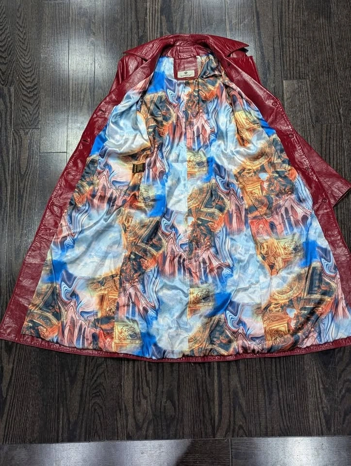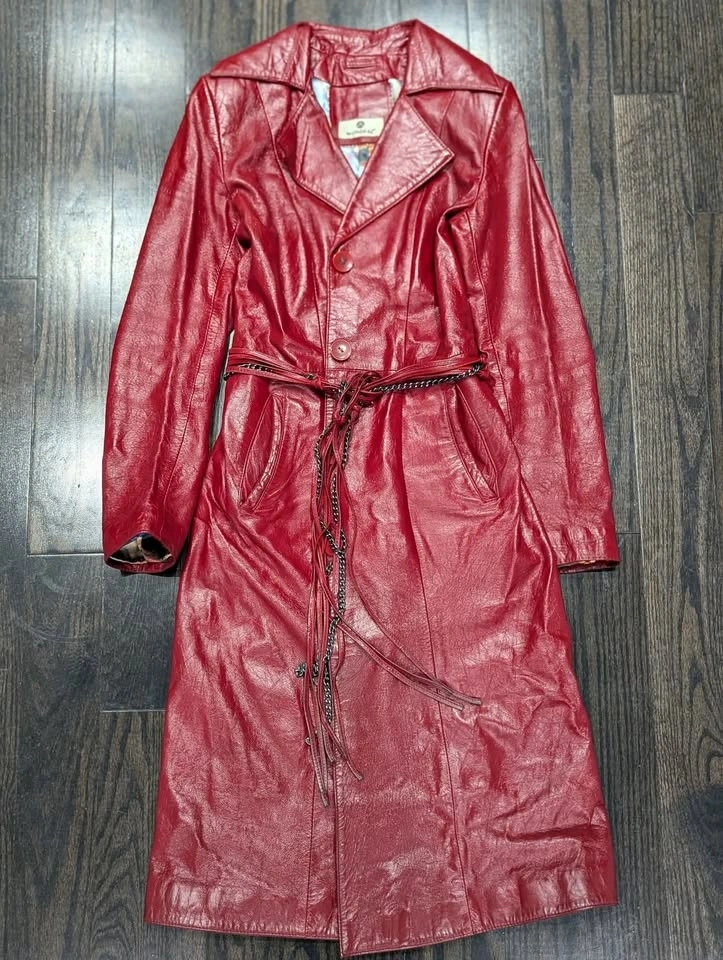 Red genuine leather trench coat