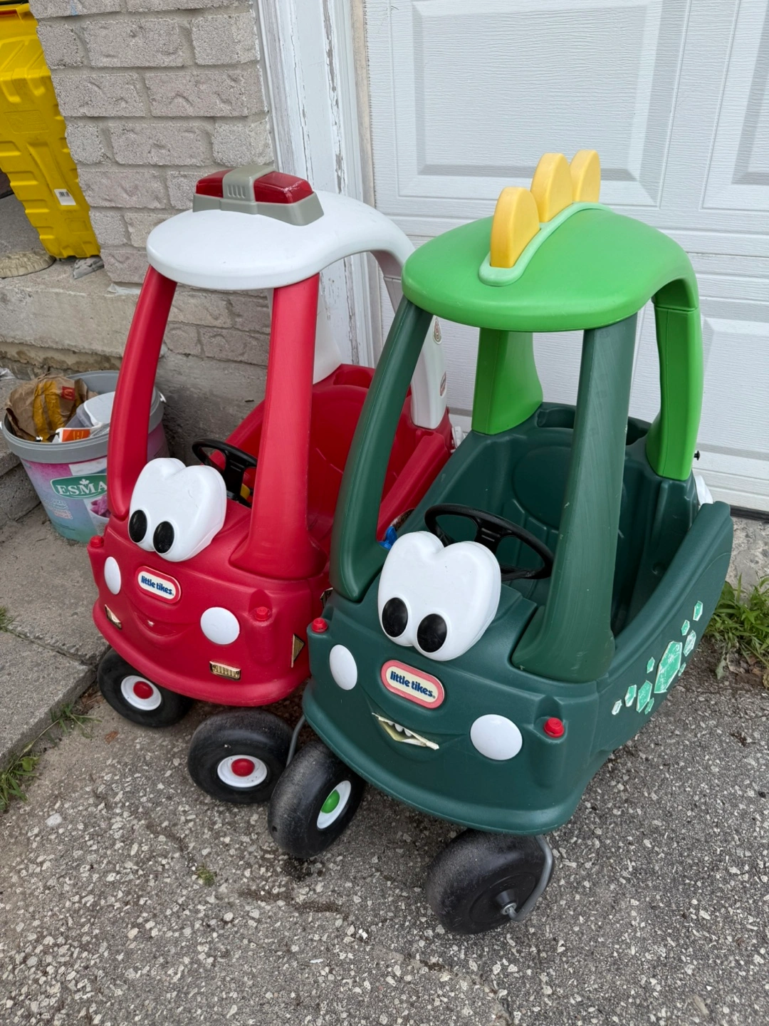 Selling two Little Tikes Cozy Coupe cars! One is red and the other is green. Great for kids to ride around in and have fun!