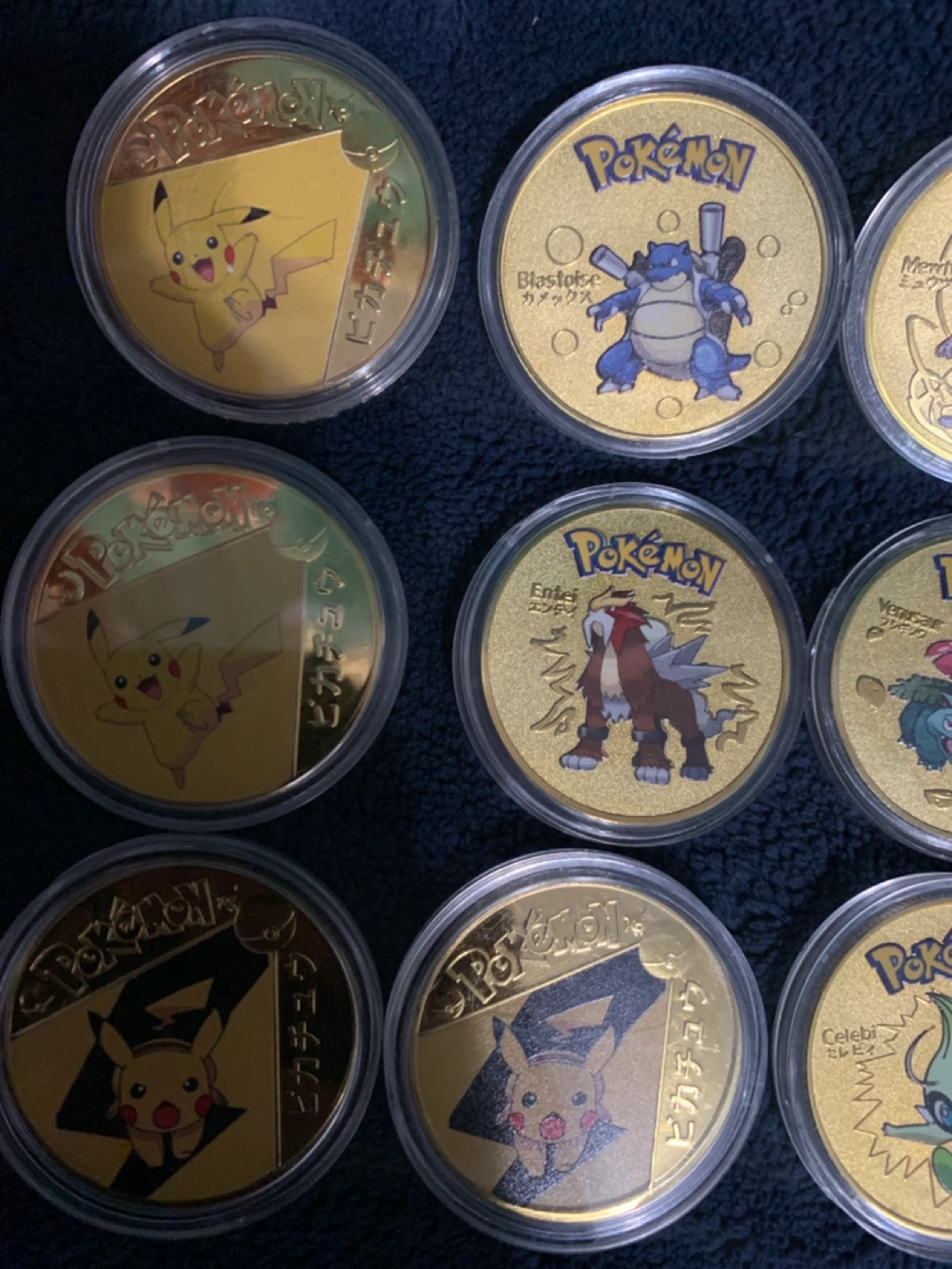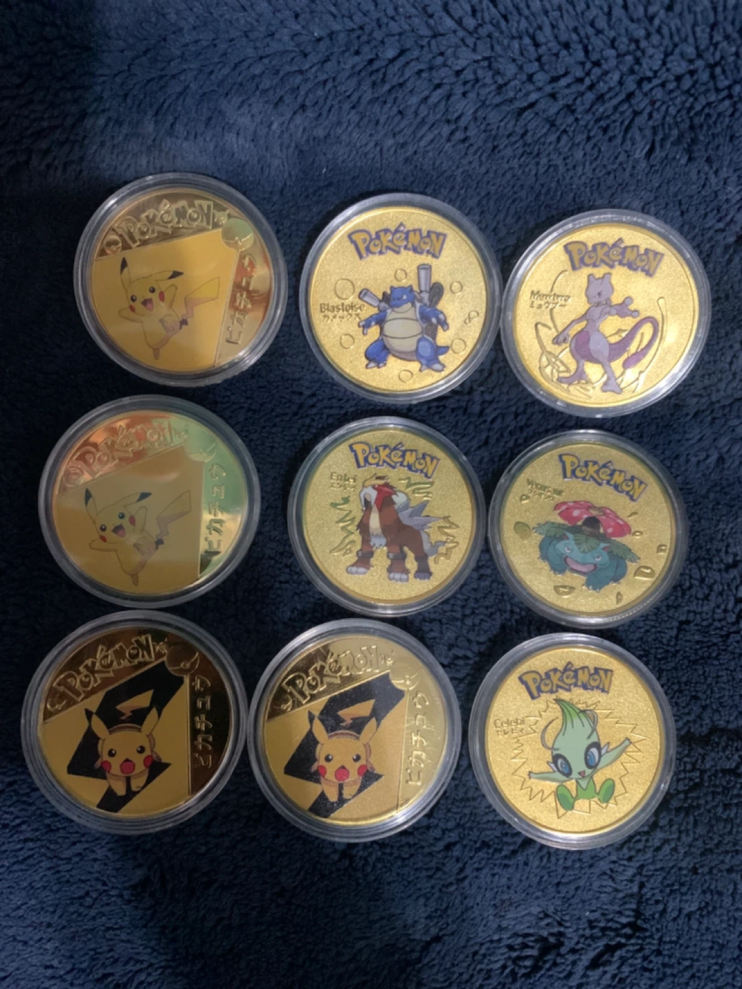 Pokemon Gold Collectable Coins Bundle Blastoise Mewtwo Pikachu Celebi brand new