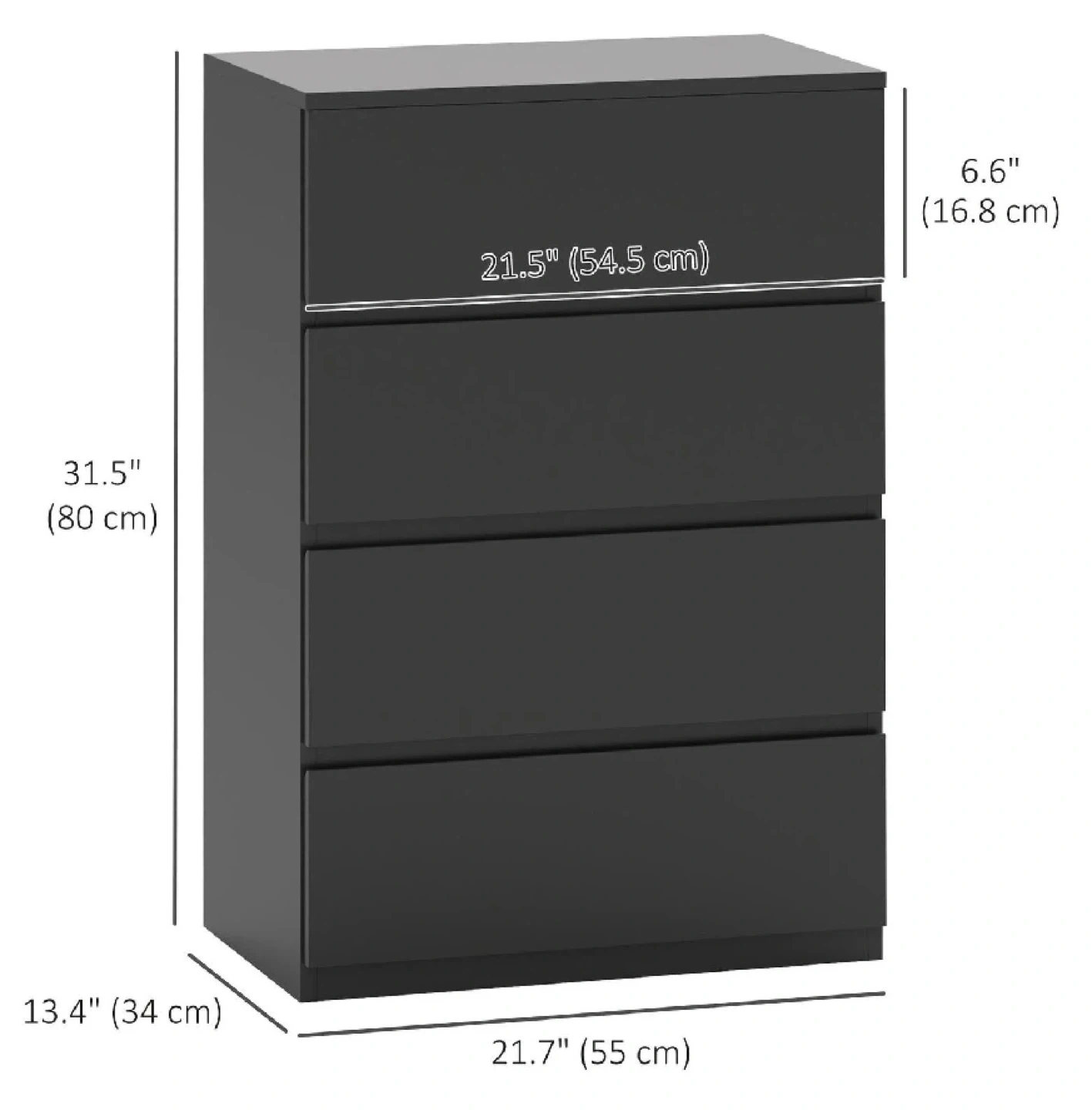 HOMCOM 4 Drawer Chest Storage, Black