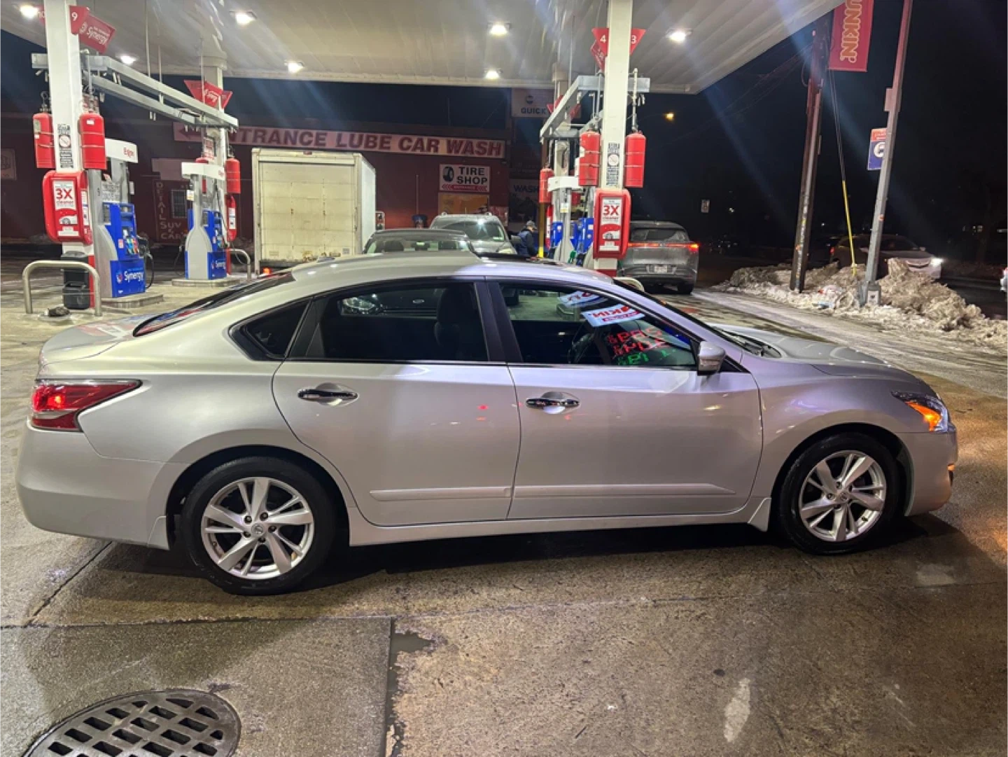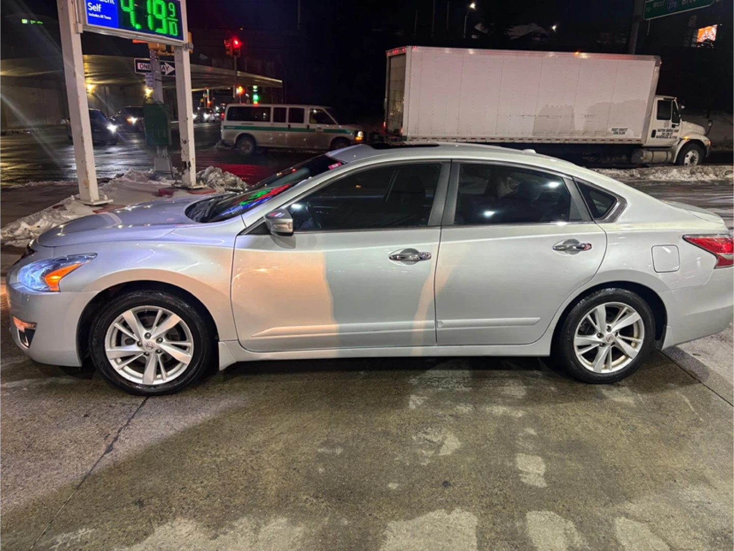 120k miles This is a Nissan Altima sedan. It's a silver four-door car with a sunroof and backup camera. The interior has black cloth seats and a touchscreen infotainment system.