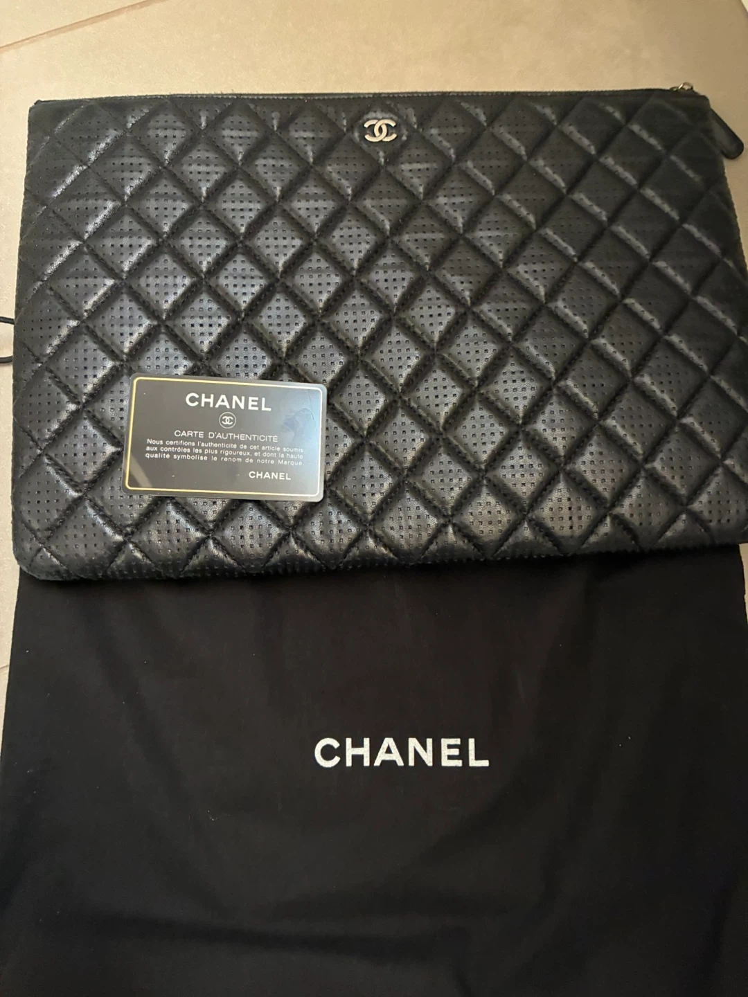 Selling a stylish Chanel black quilted pouch! It comes with its original dust bag and authenticity card. The quilted design and iconic Chanel logo make it a timeless accessory. Perfect for keeping your essentials organized in style!