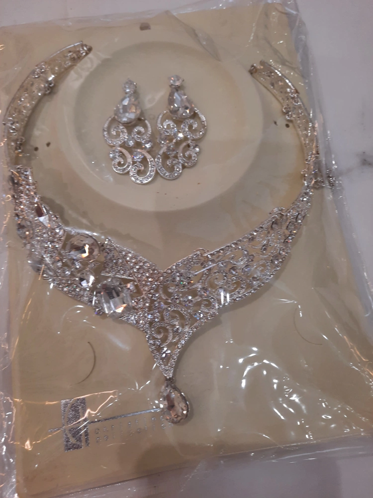 10Selling a brand new Craft Collection necklace and earring set! This beautiful set is perfect for a special occasion or to add a touch of sparkle to any outfit. The set is silver in colour and features intricate detailing with clear stones. It comes in its original packaging