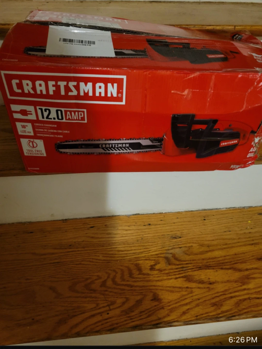 10Selling a Craftsman corded chainsaw. It's 12.0 AMP and has a 16-inch blade (406 mm). It also features tool-free tensioning. Comes in the original box!