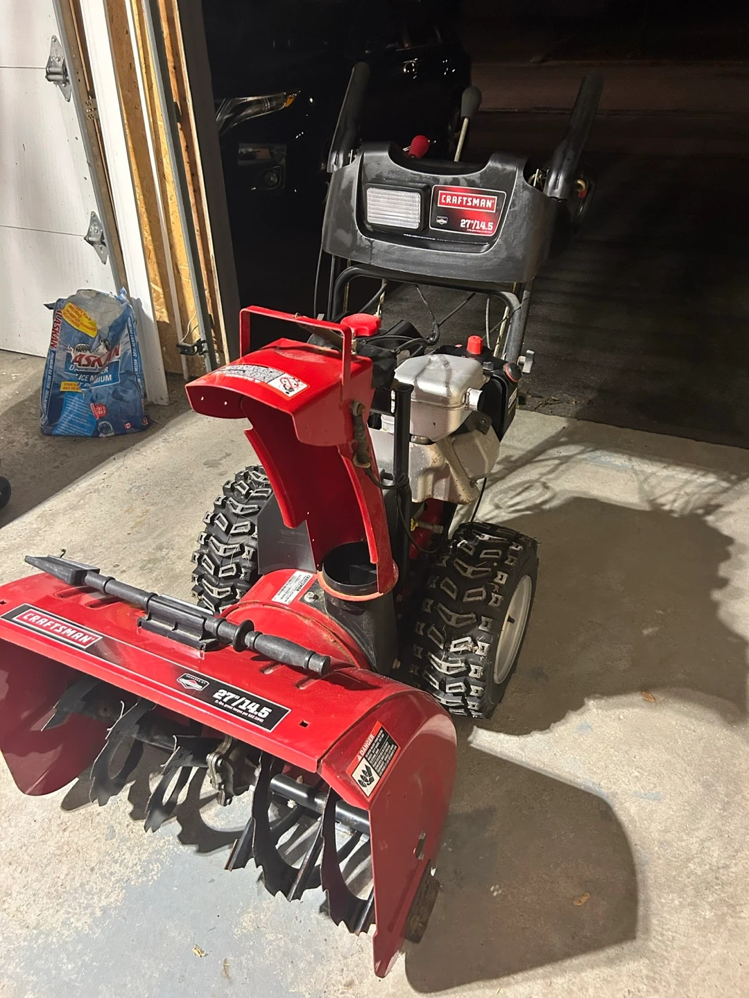 10Selling a Craftsman 27" two-stage power-propelled snow thrower. Crank shaft oil leak. Too large for current driveway. It comes with the owner's manual.