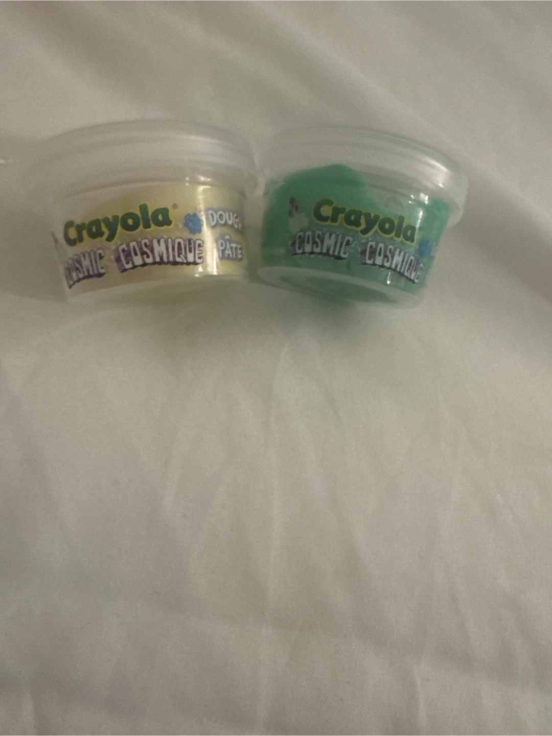 Selling two containers of Crayola Cosmic Dough! One is yellow and the other is green, perfect for some creative fun
