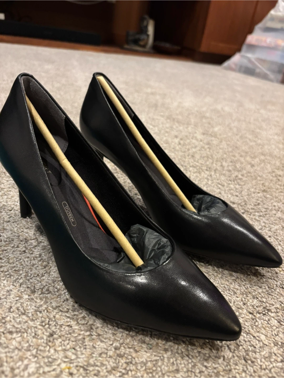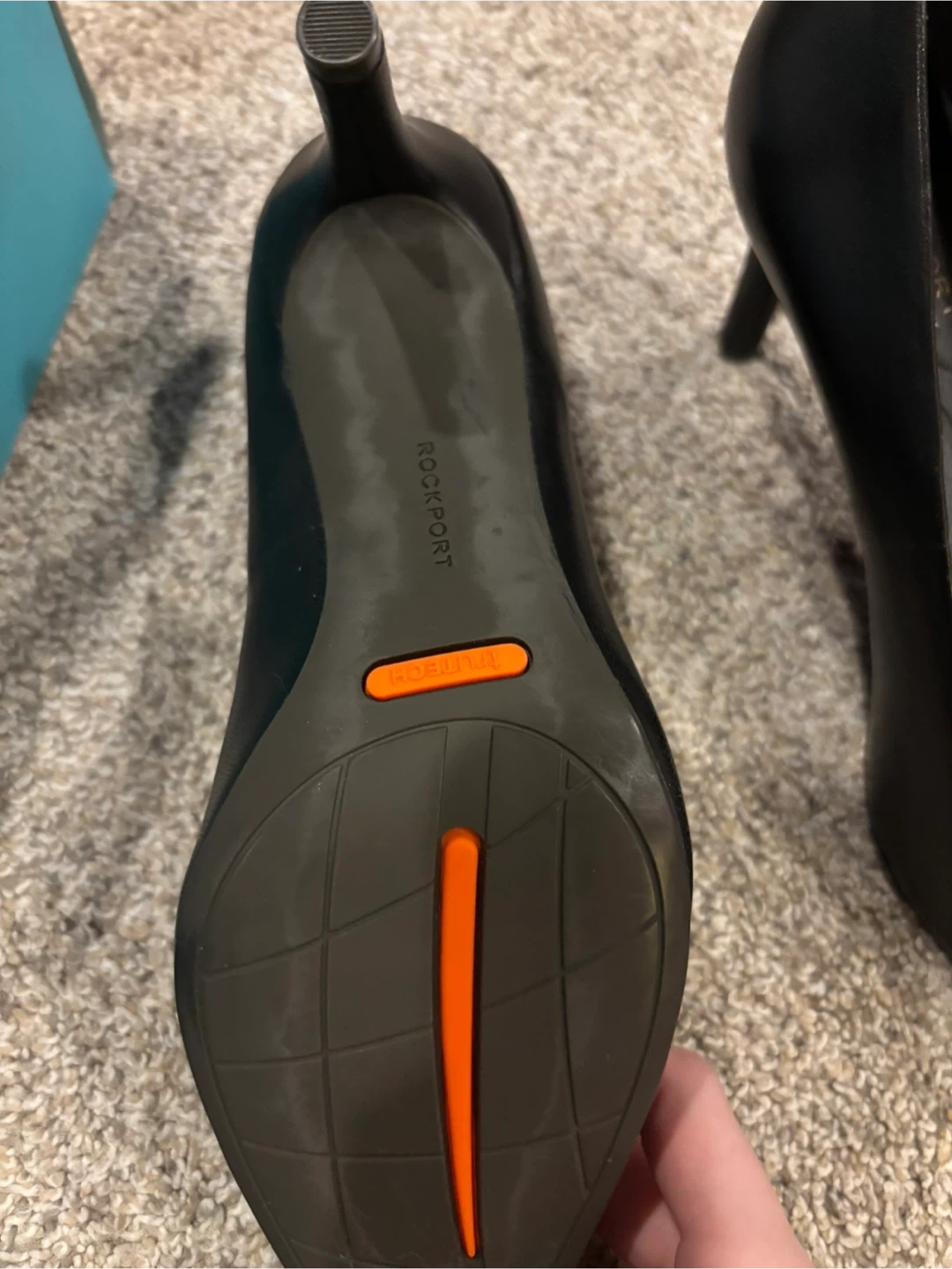 Stylish black Rockport heels featuring TruTech technology. These pumps are made from leather and designed for comfort. Perfect for everyday wear or special occasions!