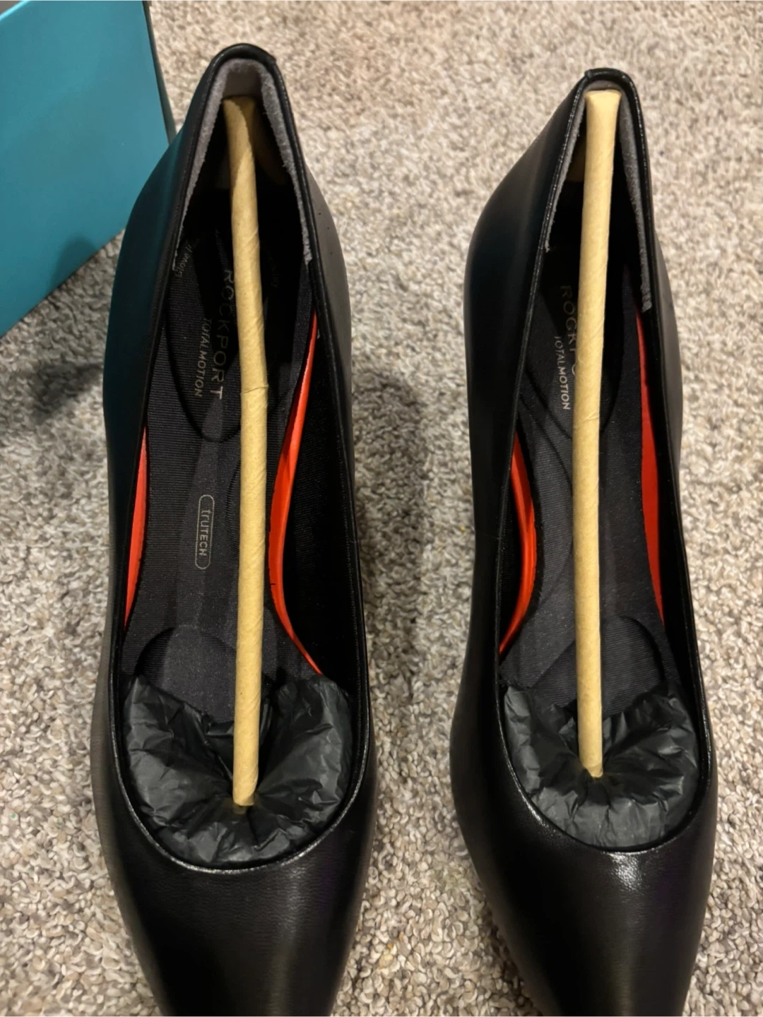 Stylish black Rockport heels featuring TruTech technology. These pumps are made from leather and designed for comfort. Perfect for everyday wear or special occasions!