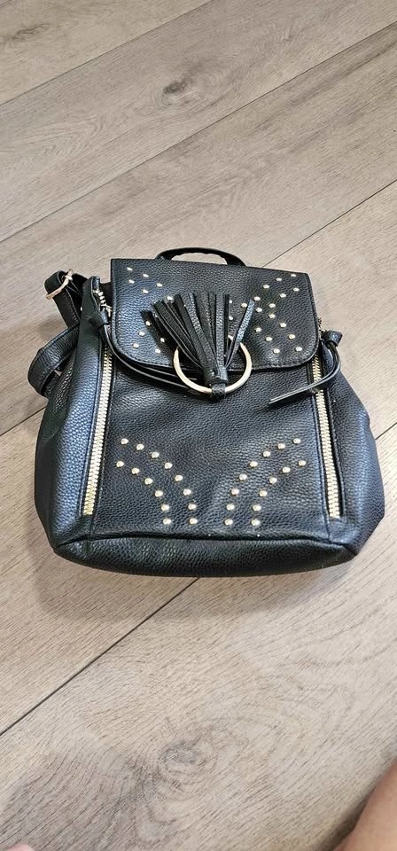 ✔️ Black studded backpack purse – trendy design with gold details