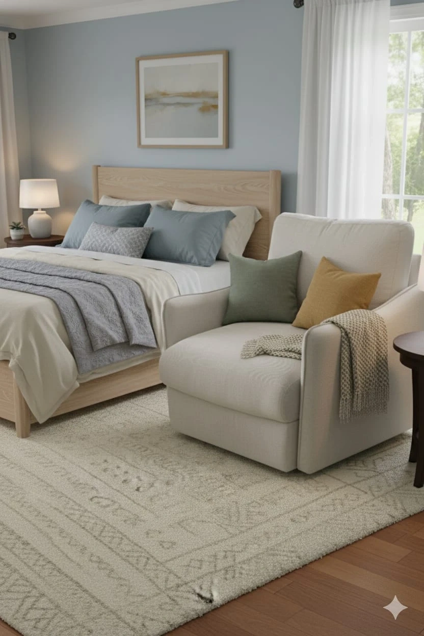 54Looking to add a comfy touch to your space? This cream-coloured armchair is just the thing! It's perfect as an accent chair in any room. Imagine curling up with a good book in this cozy seat
