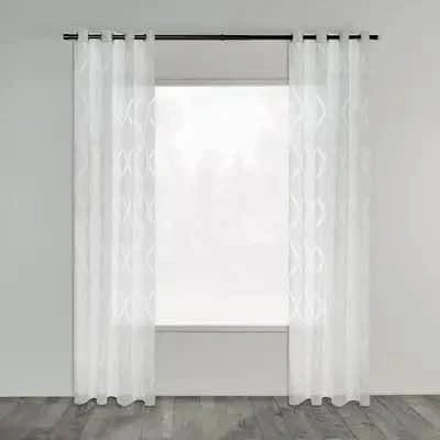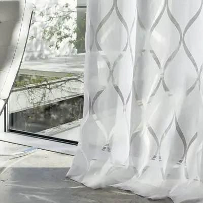 1052x96 Cream sheer curtains with wavy design.